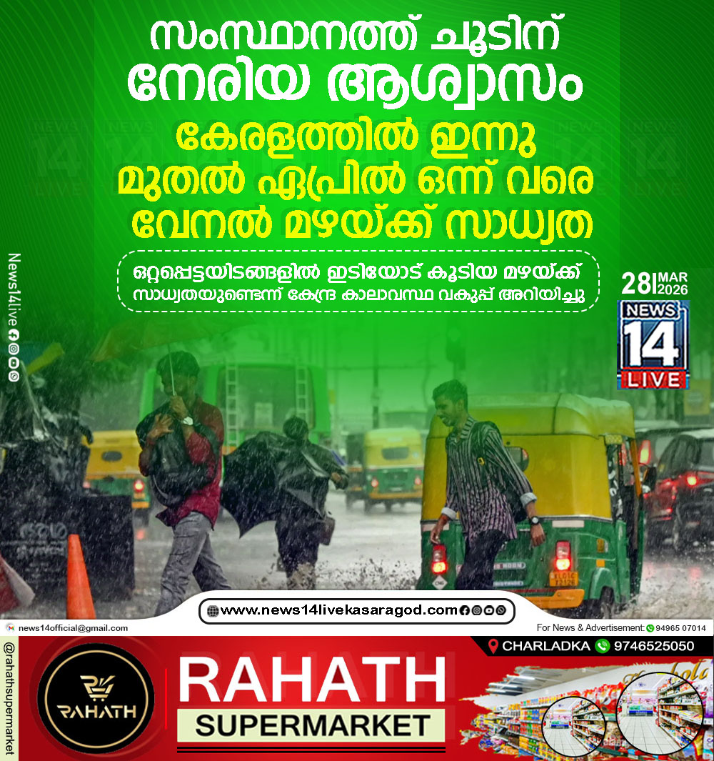 തിരുവനന്തപുരം: സംസ്ഥാനത്ത് ചൂടിന് നേരിയ ആശ്വാസം. കേരളത്തില് ഇന്നു മുതല് ഏപ്രില് ഒന്ന് വരെ വേനല് മഴയ്ക്ക് സാധ്യത. ഒറ്റപ്പെട്ടയിടങ്ങളില് ഇടിയോട് കൂടിയ മഴയ്ക്ക് സാധ്യതയുണ്ടെന്ന് കേന്ദ്ര…