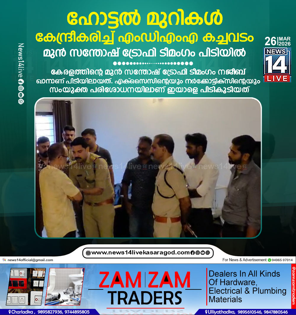 തിരുവനന്തപുരം: ഹോട്ടല് മുറികള് കേന്ദ്രീകരിച്ച് എംഡിഎംഎ കച്ചവടം നടത്തിയ മുന് സന്തോഷ് ട്രോഫി ടീമംഗം പിടിയില്. കേരളത്തിന്റെ മുന് സന്തോഷ് ട്രോഫി ടീമംഗം നജീബ് ഖാനാണ് പിടിയിലായത്.…