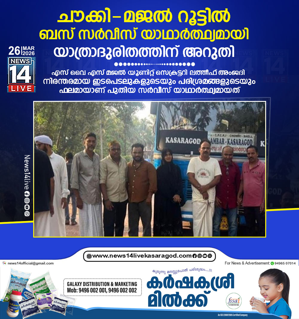 കാസര്കോട്: നാട്ടുകാരുടെ ദീര്ഘകാലത്തെ യാത്രാക്ലേശത്തിന് പരിഹാരമായി ചൗക്കി – മജല് റൂട്ടില് സ്വകാര്യ ബസ് സര്വീസ് ആരംഭിച്ചു. എസ് വൈ എസ് മജല് യൂണിറ്റ് സെക്രട്ടറി ലത്തീഫ്…