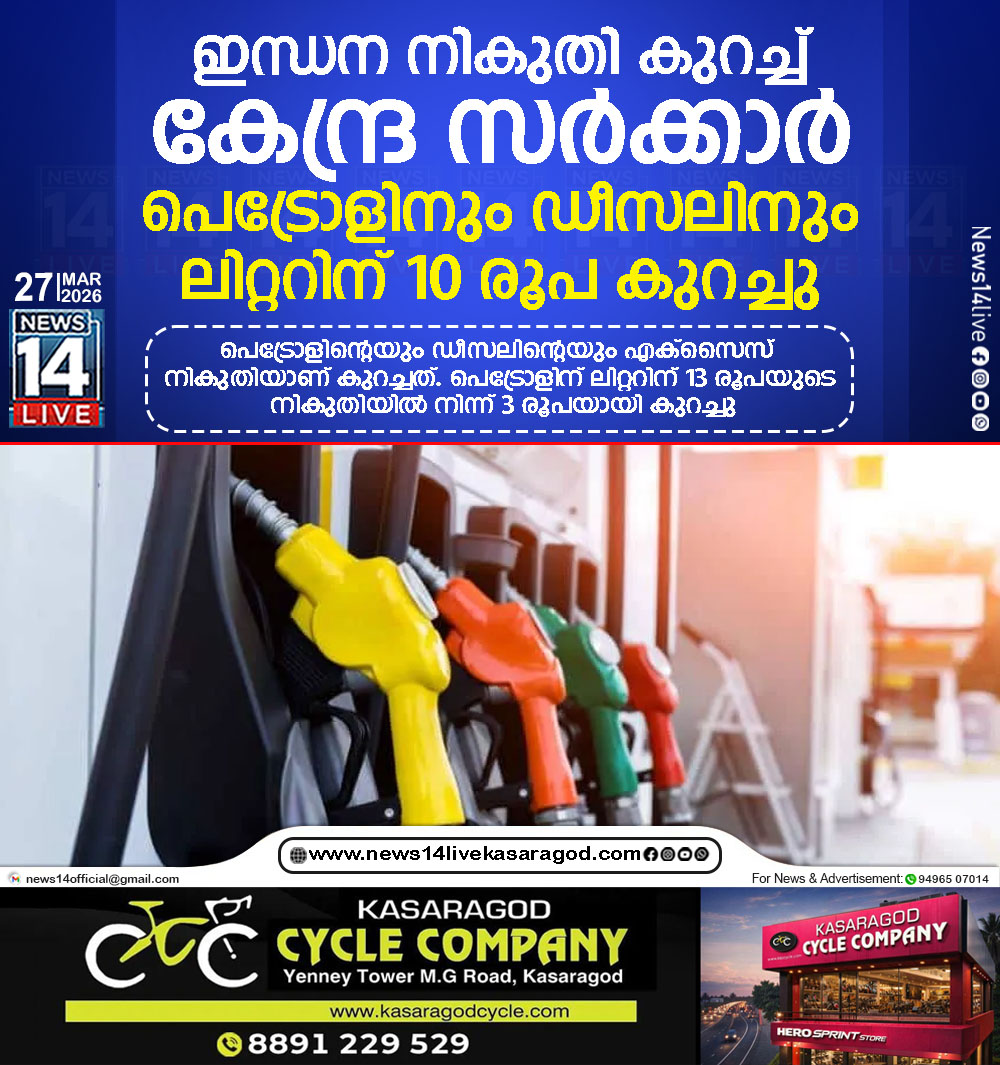 ന്യൂഡല്ഹി: പശ്ചിമേഷ്യന് സംഘര്ഷം കണക്കിലെടുത്ത് രാജ്യത്തെ ഇന്ധന നികുതി കുറച്ച് കേന്ദ്ര സര്ക്കാര്. പെട്രോളിന്റെയും ഡീസലിന്റെയും എക്സൈസ് നികുതിയാണ് കുറച്ചത്. പെട്രോളിന് ലിറ്ററിന് 13 രൂപയുടെ നികുതിയില്…