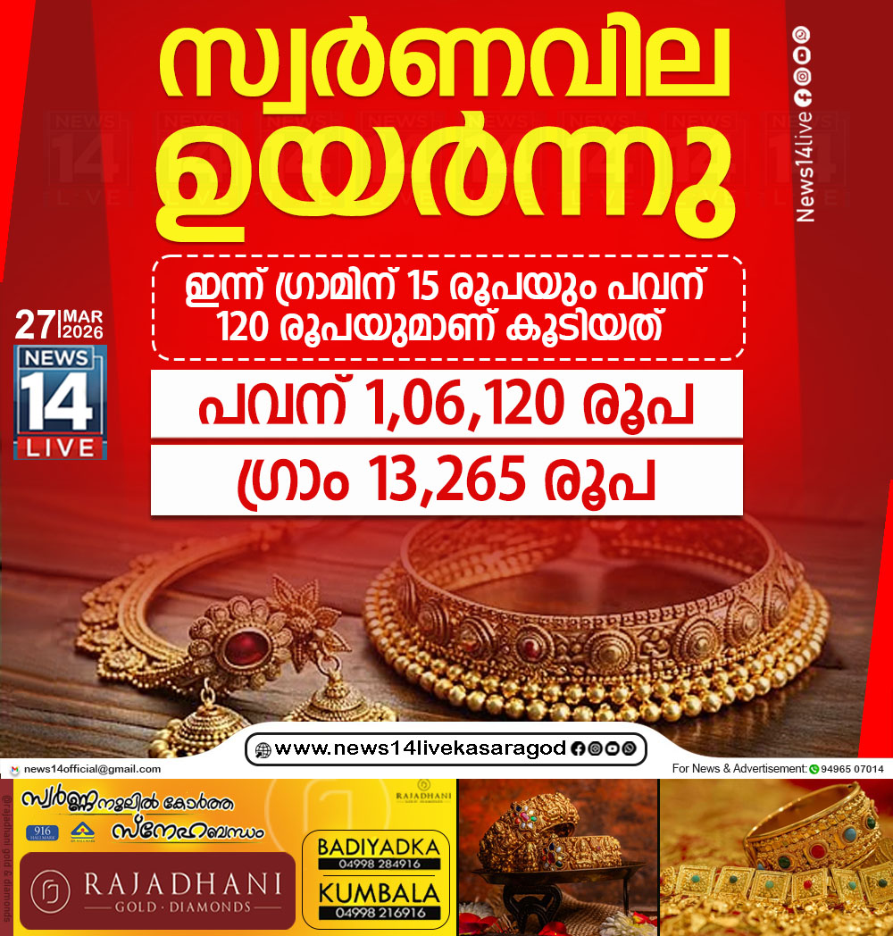 സംസ്ഥാനത്ത് സ്വര്ണവില വീണ്ടും ഉയരുന്നു. ഇന്നും സ്വര്ണത്തിന് 120 രൂപ കൂടി. ഇതോടെ ഒരു പവന് സ്വര്ണത്തിന് 1,06,120 രൂപയായി. ഇന്നലെ ഒരു പവന് സ്വര്ണത്തിന് 106000…