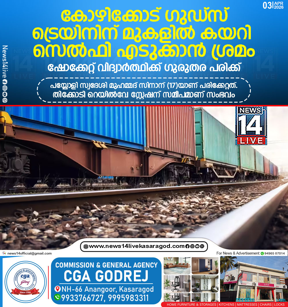 കോഴിക്കോട്: നിര്ത്തിയിട്ട ഗുഡ്സ് ട്രെയിനിന് മുകളില് കയറി സെല്ഫി എടുക്കാന് ശ്രമിച്ച വിദ്യാര്ത്ഥിക്ക് ഷോക്കേറ്റ് ഗുരുതര പരിക്ക്. പയ്യോളി സ്വദേശി മുഹമ്മദ് സിനാനാ(17)ണ് പരിക്കേറ്റത്. തിക്കോടി റെയില്വേ…