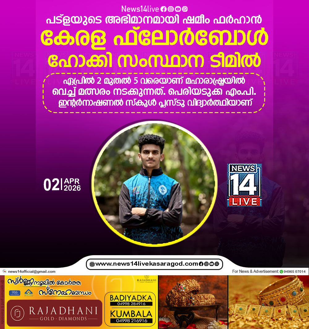 കാസര്കോട്: 19- മത് മഹാരാഷ്ട്രയില് വെച്ച് നടക്കുന്ന ദേശീയ ഫ്ലോര്ബോള് ഹോക്കി ചാമ്പ്യന്ഷിപ്പ് മത്സരത്തിലേക്ക് പങ്കെടുക്കുവാന് പട്ളയുടെ അഭിമാനം ഷമീം ഫര്ഹാന് കേരള ഫ്ലോര്ബോള് ഹോക്കി സംസ്ഥാന…