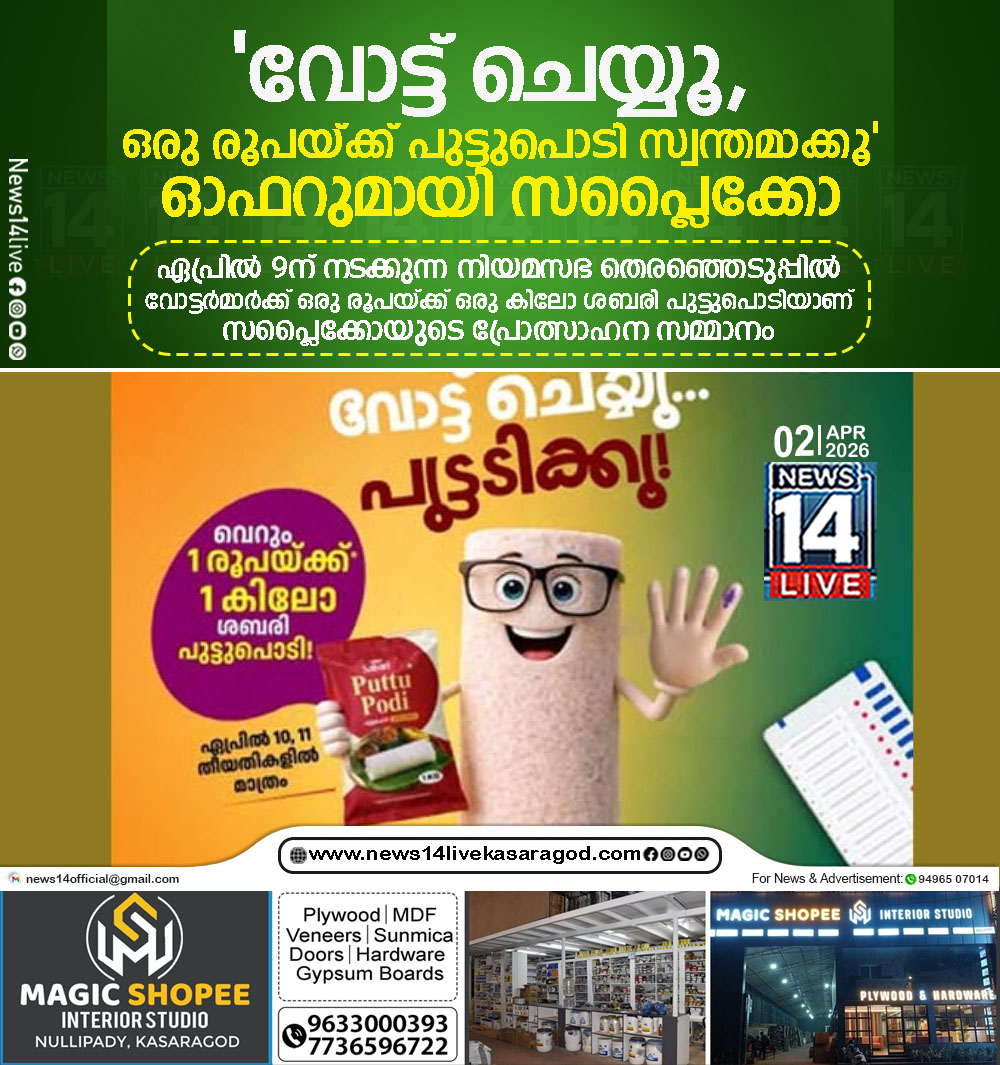 തിരുവനന്തപുരം: വോട്ടര്മാരെ പ്രോത്സാഹിപ്പിക്കുന്നതിന് വ്യത്യസ്തമായ ഓഫറുമായി സപ്ലൈക്കോ. ഏപ്രില് 9ന് നടക്കുന്ന നിയമസഭ തെരഞ്ഞെടുപ്പില് വോട്ടര്മാര്ക്ക് ഒരു രൂപയ്ക്ക് ഒരു കിലോ ശബരി പുട്ടുപൊടിയാണ് സപ്ലൈക്കോയുടെ പ്രോത്സാഹന…