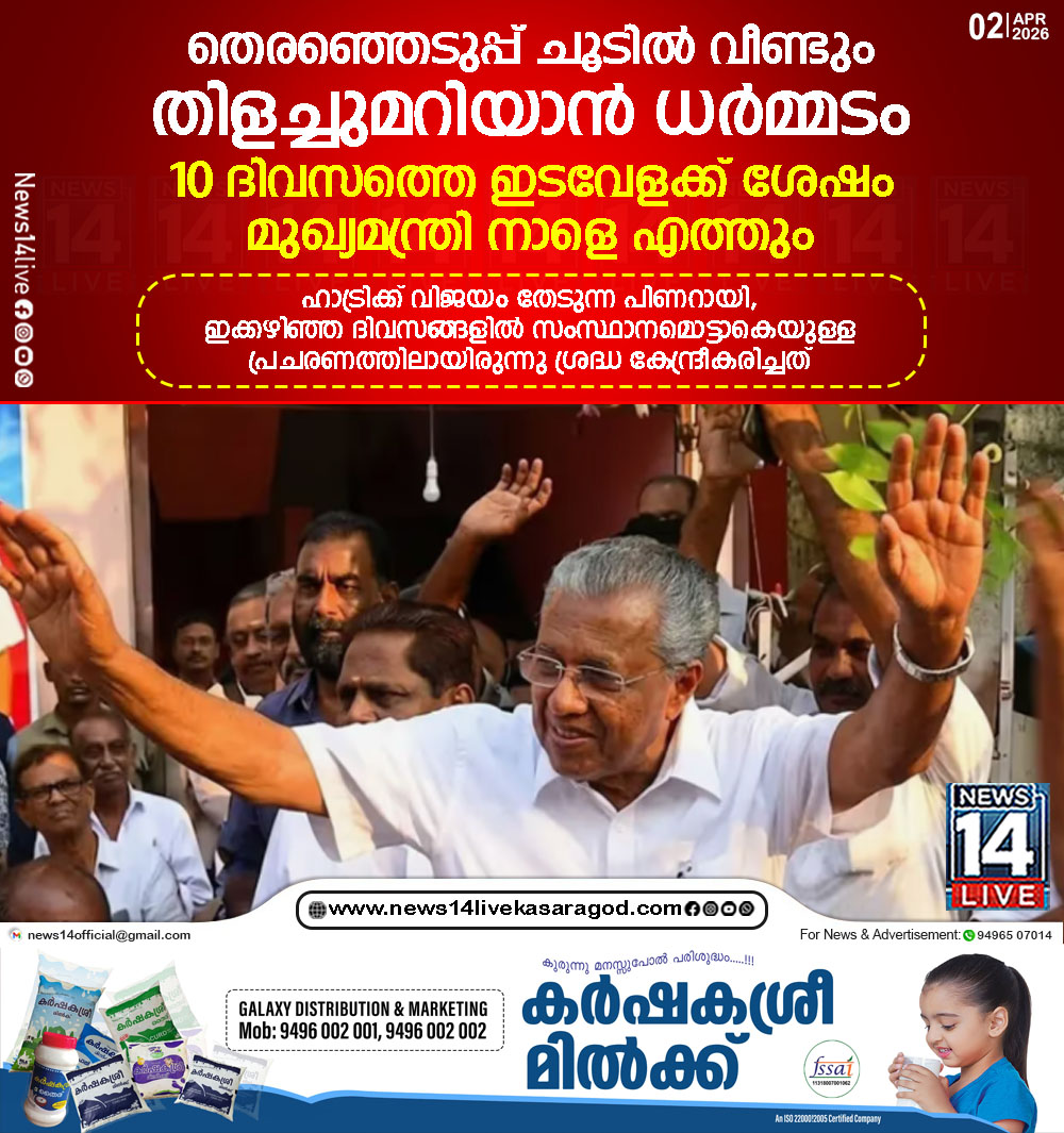 കണ്ണൂര്: പത്തുദിവസത്തെ ഇടവേളയ്ക്ക് ശേഷം മുഖ്യമന്ത്രി പിണറായി വിജയന് നാളെ വീണ്ടും മണ്ഡലത്തില് പ്രചാരണത്തിനെത്തുന്നതോടെ ധര്മ്മടത്തില് തെരഞ്ഞെടുപ്പ് ചൂടും കുതിച്ചുയരും. ഹാട്രിക്ക് വിജയം തേടുന്ന പിണറായി, ഇക്കഴിഞ്ഞ…