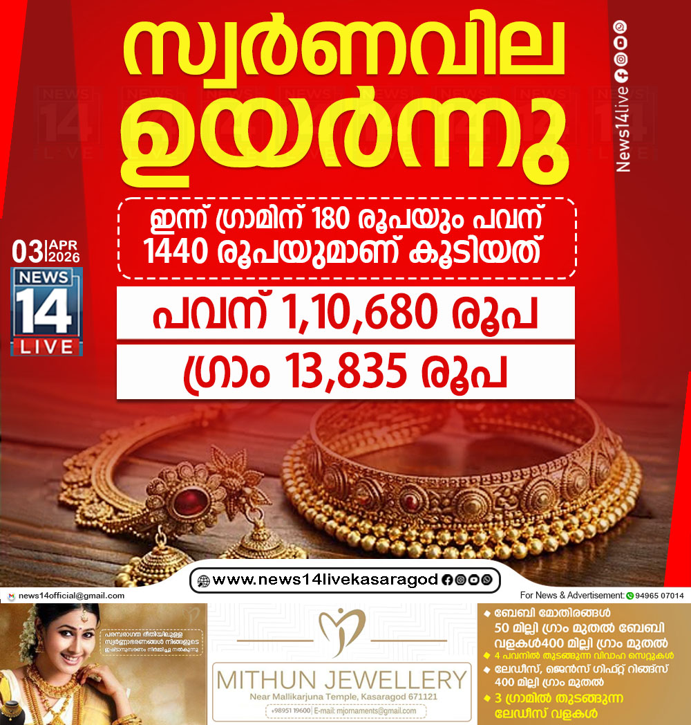 സംസ്ഥാനത്ത് സ്വര്ണ വിലയില് വര്ധനവ്. 22 കാരറ്റ് 1 ഗ്രാം സ്വര്ണത്തിന് ഇന്ന് 13, 835 രൂപയാണ് വിപണി വില. ഒരു പവന് 22 കാരറ്റ് സ്വര്ണത്തിന്റെ…