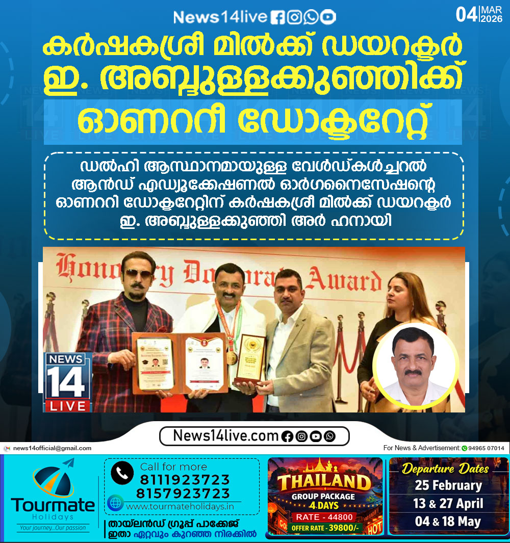 കാസര്കോട്: ഡല്ഹി ആസ്ഥാനമായുള്ള വേള്ഡ് കള്ച്ചറല് ആന്ഡ് എജ്യുക്കേഷണല് ഓര്ഗനൈസേഷന്റെ ഹോണററി ഡോക്ടറേറ്റിന് ഇ. അബ്ദുള്ളക്കുഞ്ഞി അര്ഹനായി. വിദ്യാഭ്യാസ, സാമൂഹിക മേഖലയിലെ സേവന പ്രവര്ത്തനങ്ങള് പരിഗണിച്ചാണ് വി.സി.ഇ.ഒയുടെ…