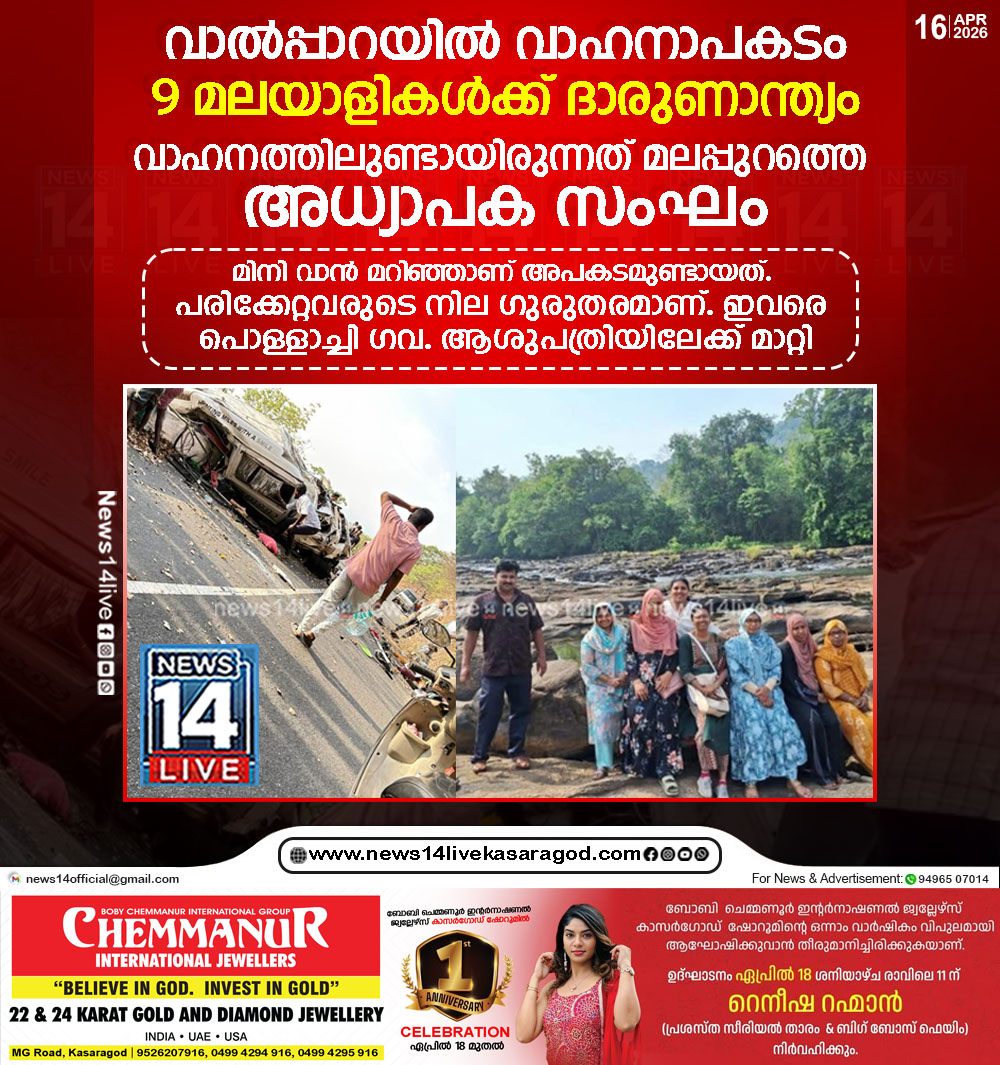 പൊള്ളാച്ചി: വാല്പ്പാറയിലുണ്ടായ വാഹനാപകടത്തില് ഒമ്പത് മലയാളികള്ക്ക് ദാരുണാന്ത്യം. മിനി വാന് മറിഞ്ഞാണ് അപകടമുണ്ടായത്. പരിക്കേറ്റവരുടെ നില ഗുരുതരമാണ്. ഇവരെ പൊള്ളാച്ചി ഗവ. ആശുപത്രിയിലേക്ക് മാറ്റി. 13 പേരാണ്…