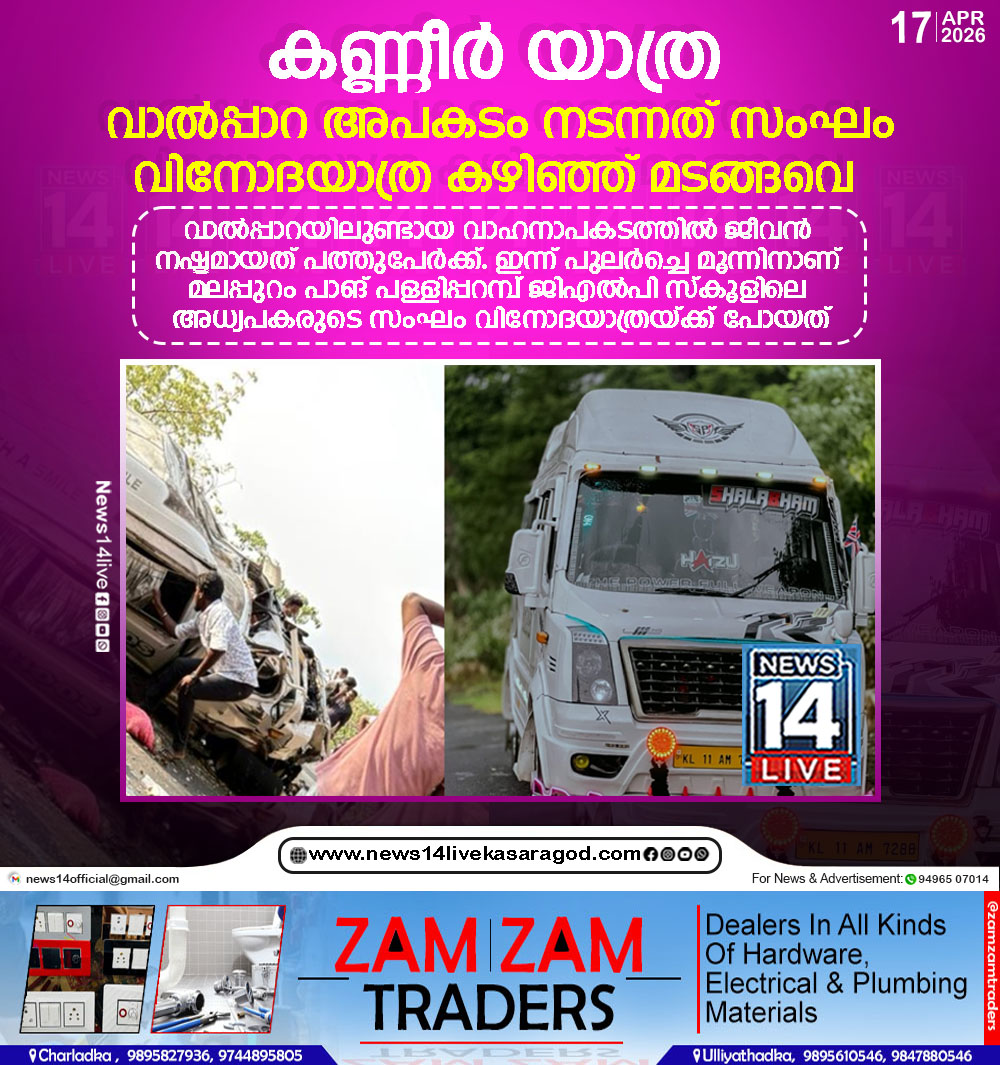 പൊള്ളാച്ചി: വാല്പ്പാറയിലുണ്ടായ വാഹനാപകടത്തില് ജീവന് നഷ്ടമായത് പത്തുപേര്ക്ക്. ഇന്ന് പുലര്ച്ചെ മൂന്നിനാണ് മലപ്പുറം പാങ് പള്ളിപ്പറമ്പ് ജിഎല്പി സ്കൂളിലെ അധ്യപകരുടെ സംഘം വിനോദയാത്രയ്ക്ക് പോയത്. വൈകിട്ട് 5.30…