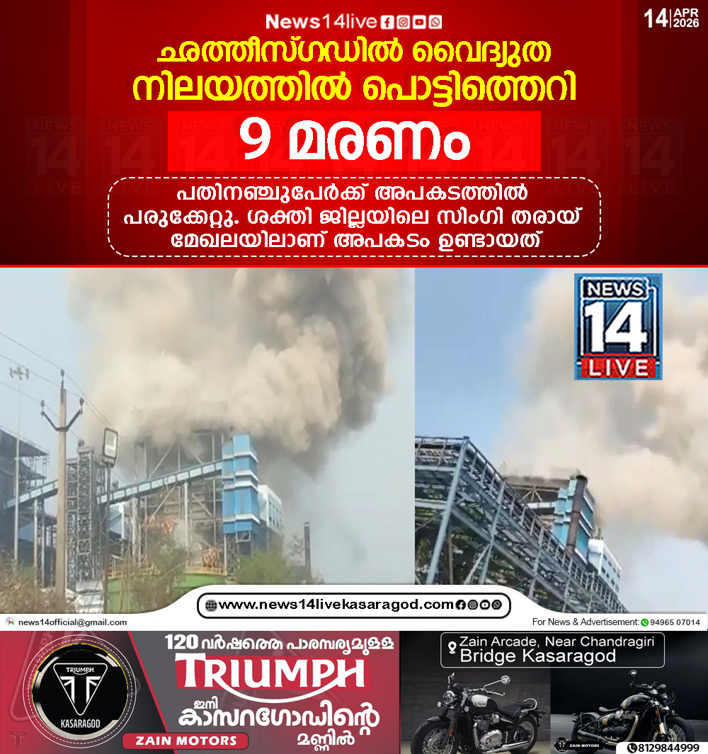ഛത്തീസ്ഗഡില് വേദാന്ത വൈദ്യുത നിലയത്തില് പൊട്ടിത്തെറി.ഒന്പത് പേര് മരിച്ചു. പതിനഞ്ചുപേര്ക്ക് അപകടത്തില് പരുക്കേറ്റു. ശക്തി ജില്ലയിലെ സിംഗി തരായ് മേഖലയിലാണ് അപകടം ഉണ്ടായത്. സ്ഫോടനത്തെത്തുടര്ന്ന് തൊഴിലാളികള് സുരക്ഷിതമായ…