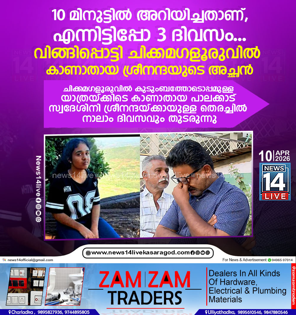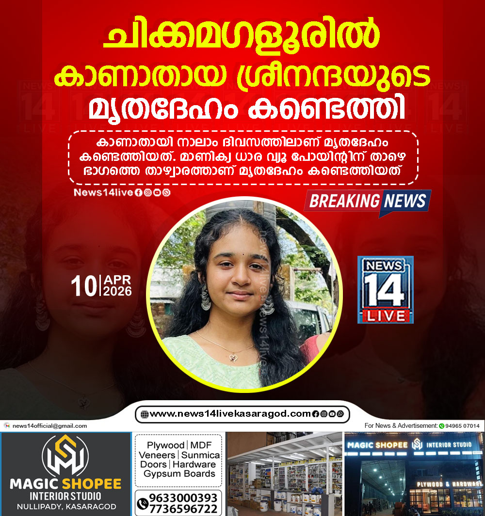 ബെംഗളൂരു: ചിക്കമഗളൂരുവില് കുടുംബത്തോടൊപ്പമുള്ള യാത്രയ്ക്കിടെ കാണാതായ പാലക്കാട് സ്വദേശിനി ശ്രീനന്ദയുടെ മൃതദേഹം കണ്ടെത്തി. കാണാതായി നാലാം ദിവസത്തിലാണ് മൃതദേഹം കണ്ടെത്തിയത്.മാണിക്യ ധാര വ്യൂ പോയിന്റിന് താഴെ ഭാഗത്തെ…