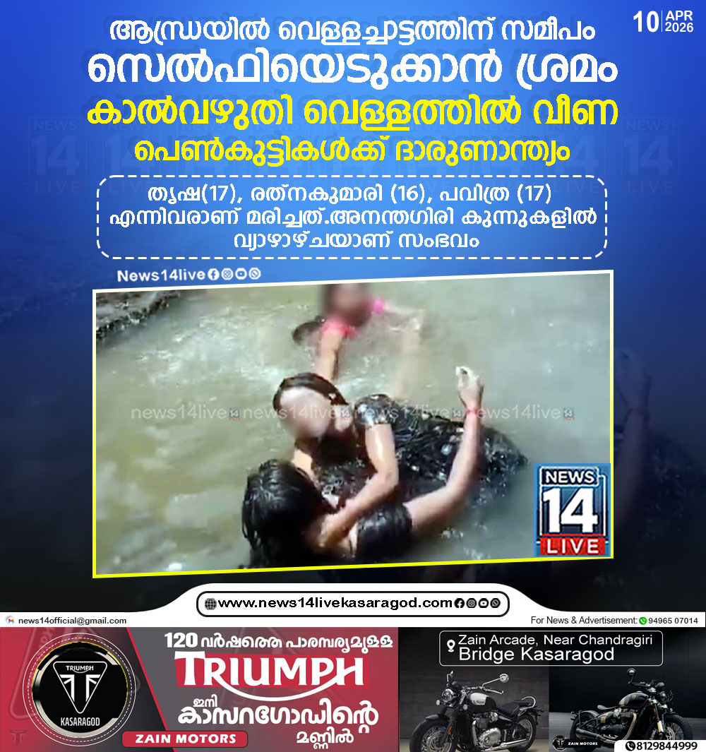 ഹൈദരാബാദ്: ആന്ധ്ര പ്രദേശിലെ അല്ലൂരി സീതാരാമ രാജു ജില്ലയില് വെള്ളച്ചാട്ടത്തിന് സമീപം സെല്ഫി എടുക്കുന്നതിനിടെ വെള്ളത്തിലേക്ക് വീണ് മൂന്ന് പെണ്കുട്ടികള് മുങ്ങിമരിച്ചു. തൃഷ(17), രത്നകുമാരി (16), പവിത്ര…