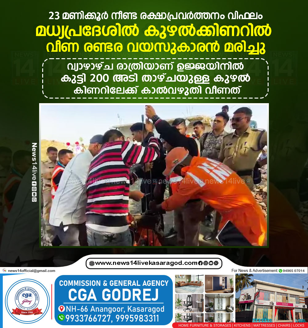 മധ്യപ്രദേശില് കുഴല്ക്കിണറില് വീണ രണ്ടര വയസുകാരന് മരിച്ചു. 23 മണിക്കൂര് നീണ്ട രക്ഷാപ്രവര്ത്തനമാണ് വിഫലമായത്. വ്യാഴാഴ്ച രാത്രിയാണ് ഉജ്ജയിനില് കുട്ടി 200 അടി താഴ്ചയുള്ള കുഴല് കിണറിലേക്ക്…