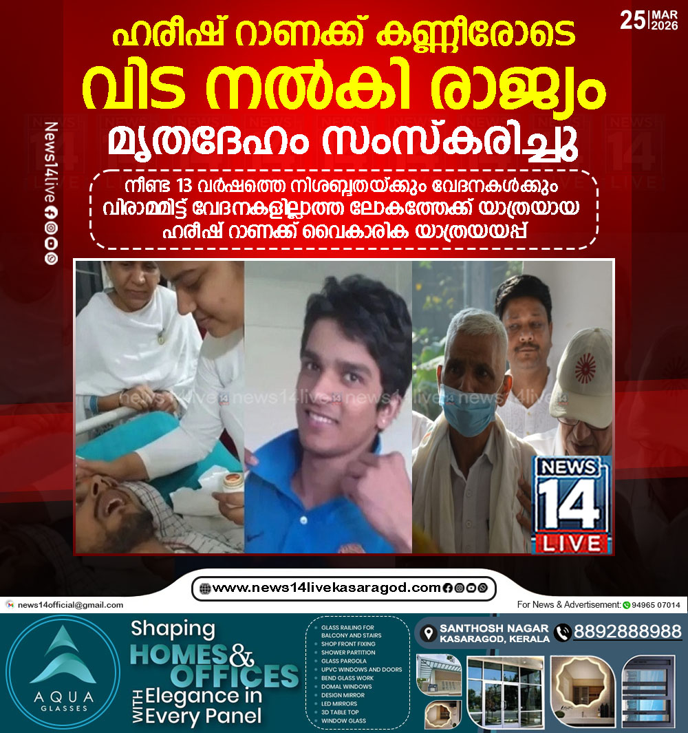 ഹരീഷ് റാണക്ക് കണ്ണീരോടെ വിട നല്കി രാജ്യം.നീണ്ട 13 വര്ഷത്തെ നിശബ്ദതയ്ക്കും വേദനകള്ക്കും വിരാമമിട്ട് വേദനകളില്ലാത്ത ലോകത്തേക്ക് യാത്രയായ ഹരീഷ് റാണക്ക് വൈകാരിക യാത്രയയപ്പ്. ബന്ധുക്കളും സുഹൃത്തുക്കളും…