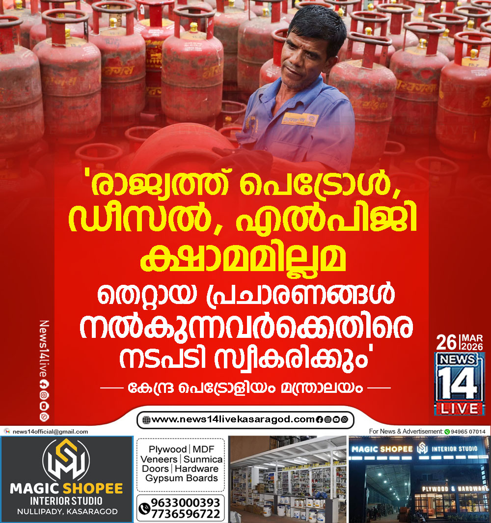 ന്യൂഡല്ഹി: പശ്ചിമേഷ്യന് സംഘര്ഷത്തെ തുടര്ന്ന് രാജ്യത്ത് ഇന്ധന ക്ഷാമമുണ്ടാകുമെന്നും കോവിഡ് കാലത്തെപ്പോലെ ലോക്ഡൗണിലേക്ക് കടക്കുമെന്നുമുള്ള അഭ്യൂഹങ്ങള് തള്ളി കേന്ദ്രം. ലോക്ഡൗണിലേക്ക് കടക്കേണ്ട സാഹചര്യം രാജ്യത്തില്ലെന്നാണ് കേന്ദ്രത്തിന്റെ വിശദീകരണം.…