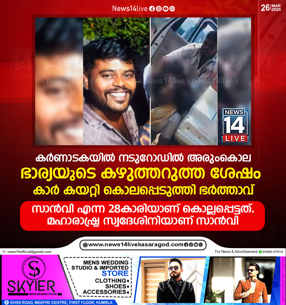 ബെംഗളൂരു: കര്ണാടകയിലെ കലബുറഗി ജില്ലയില് നടുറോഡില് അരുംകൊല. കുടുംബ വഴക്കിന്റെ പേരില് ഭര്ത്താവ് ഭാര്യയുടെ കഴുത്തറുത്ത ശേഷം ശരീത്തിലൂടെ കാര് കയറ്റി കൊലപ്പെടുത്തി. സംഭവത്തിന്റെ വീഡിയോ ദൃശ്യങ്ങള്…