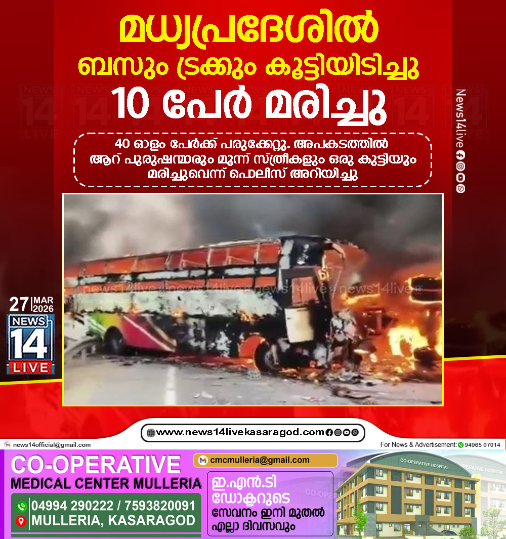 മധ്യപ്രദേശിലെ ചിന്ദ്വാഡയില് ബസ് അപകടത്തില് 10 പേര് മരിച്ചു. ബസ്സും ട്രക്കും കൂട്ടിയിടിച്ചാണ് അപകടം. 40 ഓളം പേര്ക്ക് പരുക്കേറ്റു. അപകടത്തില് ആറ് പുരുഷന്മാരും മൂന്ന് സ്ത്രീകളും…