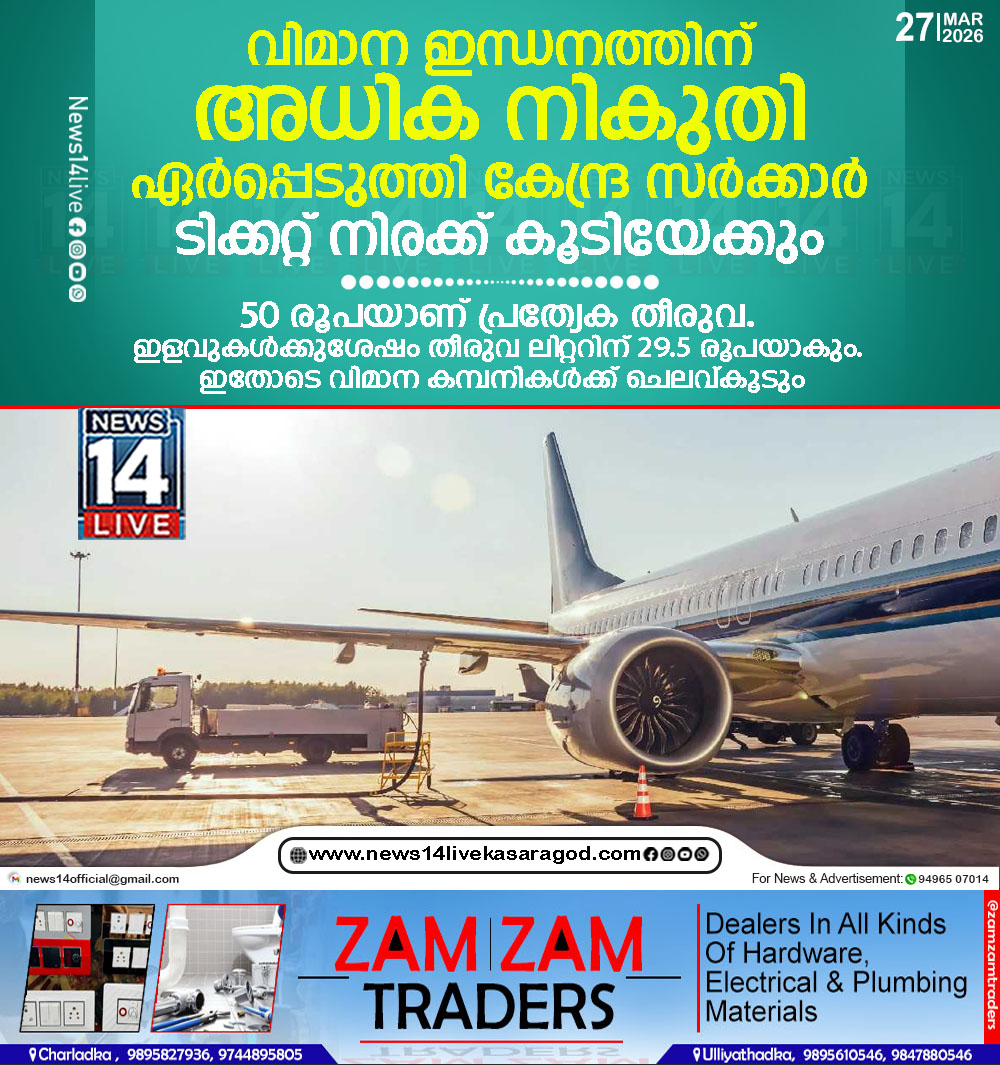 ന്യൂഡല്ഹി: എവിയേഷന് ടര്ബൈന് ഇന്ധനത്തിന് അധിക എക്സൈസ് തീരുവ ഏര്പ്പെടുത്തി കേന്ദ്ര സര്ക്കാര്.50 രൂപയാണ് പ്രത്യേക തീരുവ. ഇളവുകള്ക്കുശേഷം തീരുവ ലിറ്ററിന് 29.5 രൂപയാകും. ഇതോടെ വിമാന…