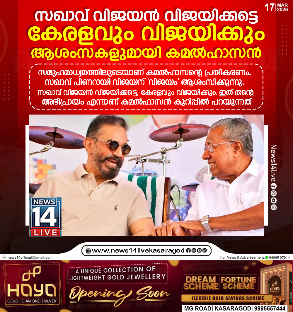ചെന്നൈ: വരുന്ന നിയമസഭാ തെരഞ്ഞെടുപ്പില് മുഖ്യമന്ത്രി പിണറായി വിജയനും ഇടതുപക്ഷത്തിനും വിജയം ആശംസിച്ച് മക്കള് നീതി മയ്യം നേതാവും രാജ്യസഭാംഗവുമായ കമല്ഹാസന്. സമൂഹമാധ്യമത്തിലൂടെയാണ് കമല്ഹാസന്റെ പ്രതികരണം. സഖാവ്…