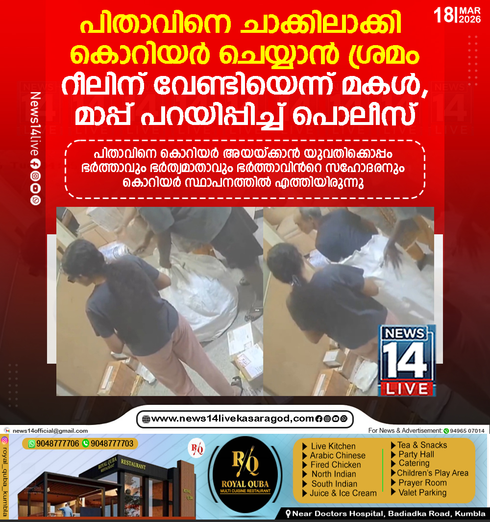ബെംഗളൂരു : ബെംഗളൂരുവില് റീല് വീഡിയോ ഷൂട്ട് ചെയ്യാനായി പിതാവിനെ ചാക്കിലാക്കി കൊറിയര് ചെയ്യാന് യുവതിയുടെ ശ്രമം. പിതാവിനെ കൊറിയര് അയയ്ക്കാന് യുവതിക്കൊപ്പം ഭര്ത്താവും ഭര്ത്യമാതാവും ഭര്ത്താവിന്റെ…