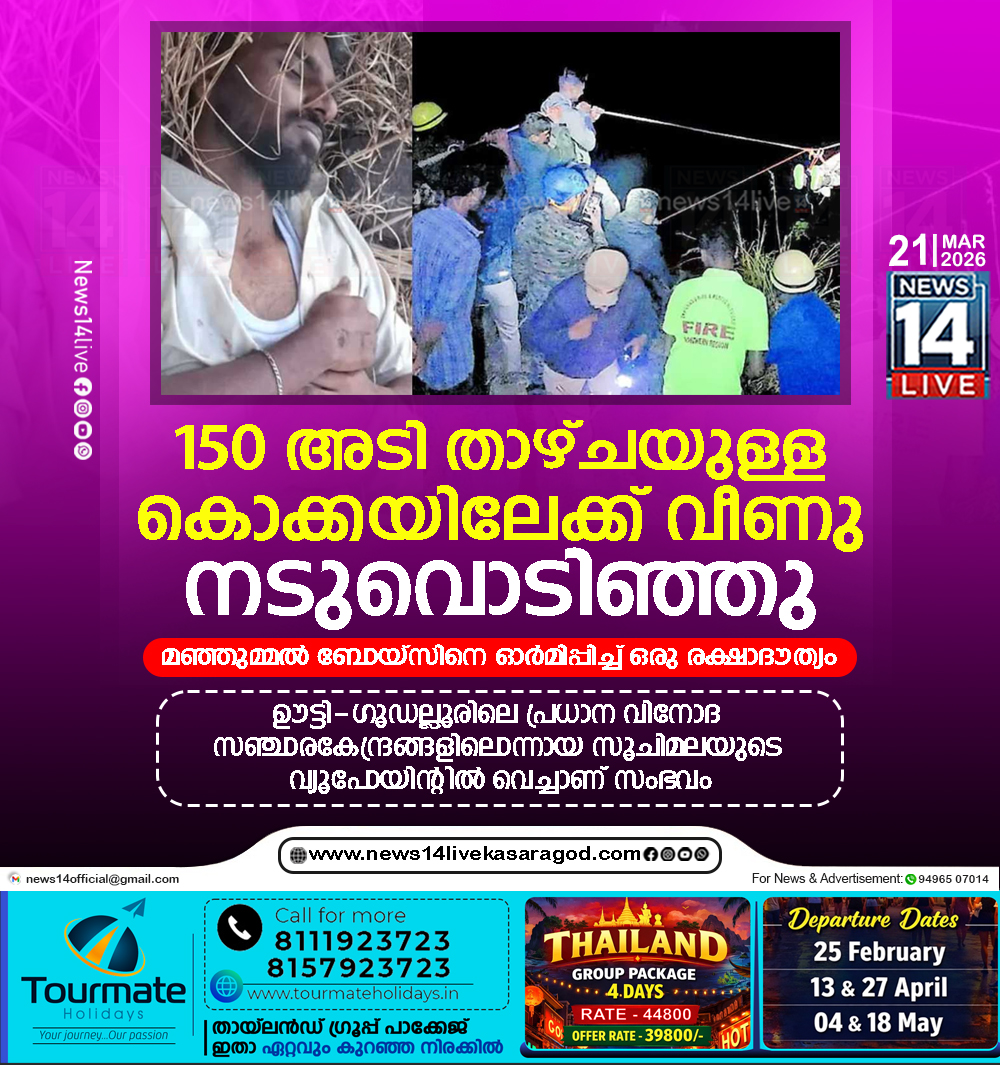 ഗുഡല്ലൂര്: കുന്നിന്മുകളില് നിന്നും 150 അടി താഴ്ചയിലേക്ക് വീണ യുവാവിനെ അതിസാഹസികമായി രക്ഷിച്ച് സൈന്യം. ഊട്ടി-ഗൂഡല്ലൂരിലെ പ്രധാന വിനോദ സഞ്ചാരകേന്ദ്രങ്ങളിലൊന്നായ സൂചിമലയുടെ വ്യൂപോയിന്റില് വെച്ചാണ് സംഭവം. മഞ്ഞുമ്മല്…