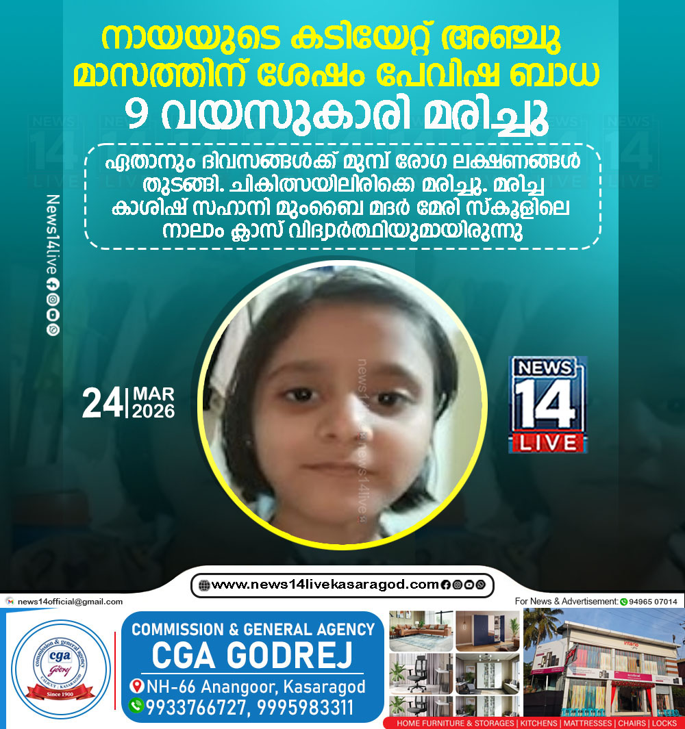 നായയുടെ കടിയേറ്റ് അഞ്ചു മാസത്തിന് ശേഷം പേവിഷ ബാധ. മുംബൈയില് 9 വയസുകാരി മരിച്ചു. അഞ്ചുമാസം മുമ്പാണ് നായയുടെ കടിയേറ്റത്. പ്രതിരോധ വാക്സിന് എടുത്തിരുന്നില്ല. ഏതാനും ദിവസങ്ങള്ക്ക്…