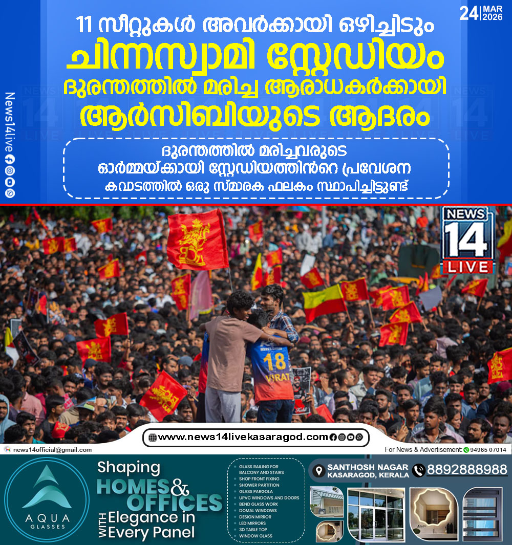 ബെംഗളൂരു: ഐപിഎല്ലില് കഴിഞ്ഞ വര്ഷം റോയല് ചലഞ്ചേഴ്സ് ബെംഗളൂരുവിന്റെ(ആര്സിബി) കിരീടനേട്ടം ആഘോഷിക്കുന്നതിനിടെ എം. ചിന്നസ്വാമി സ്റ്റേഡിയത്തിന് പുറത്തുണ്ടായ തിക്കിലും തിരക്കിലും പെട്ട് ജീവന് നഷ്ടപ്പെട്ട 11 ആരാധകര്ക്ക്…