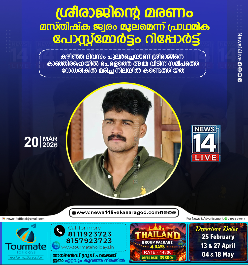 ശ്രീരാജിന്റെ മരണം മസ്തിഷ്‌ക ജ്വരം മൂലമെന്ന് പ്രാഥമിക പോസ്റ്റ്‌മോര്‍ട്ടം റിപ്പോര്‍ട്ട്