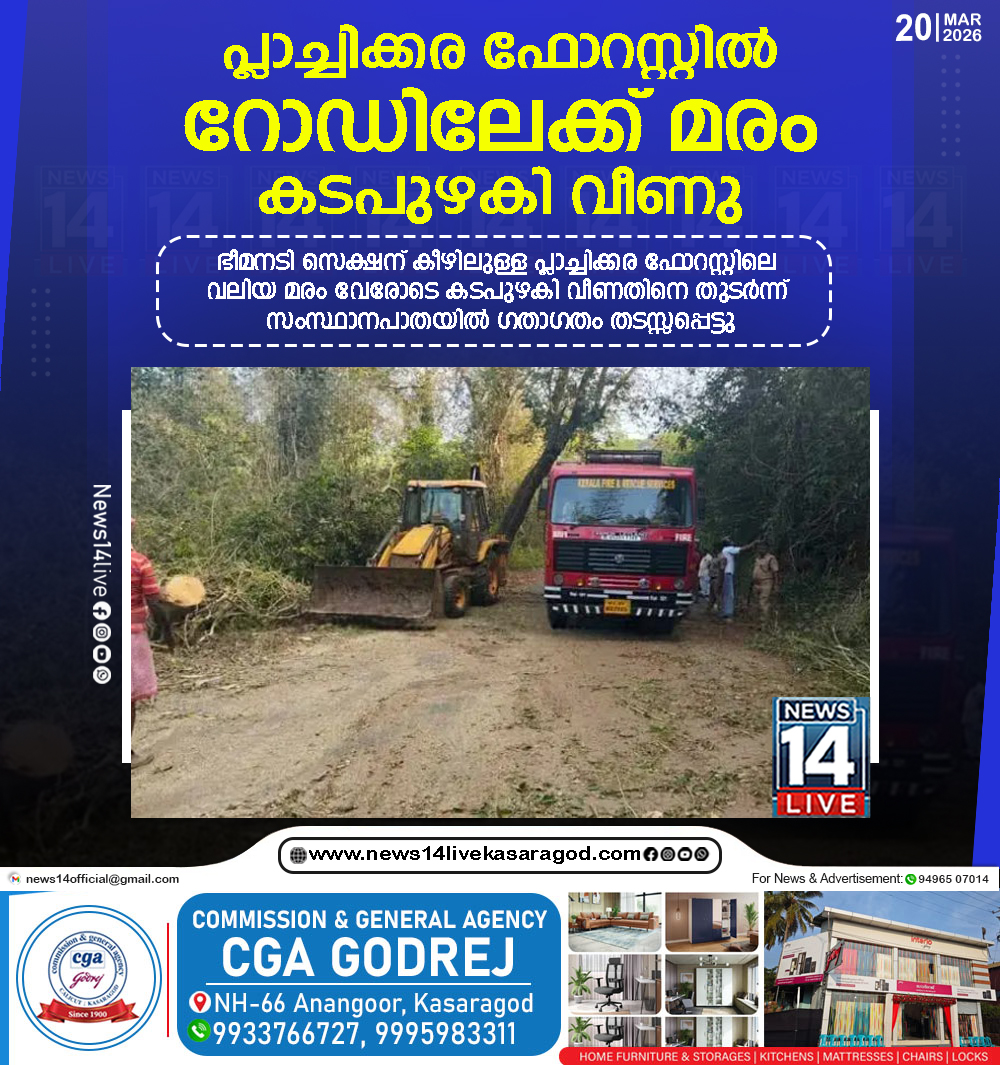 ഭീമനടി സെക്ഷന് കീഴിലുള്ള പ്ലാച്ചിക്കര ഫോറസ്റ്റിലെ വലിയ മരം വേരോടെ കടപുഴകി വീണതിനെ തുടര്‍ന്ന് സംസ്ഥാനപാതയില്‍ ഗതാഗതം തടസ്സപ്പെട്ടു. 2026 മാര്‍ച്ച് 19 വ്യാഴാഴ്ച വൈകിട്ടോടെയാണ് ഭീമനടി-വെള്ളരിക്കുണ്ട്…