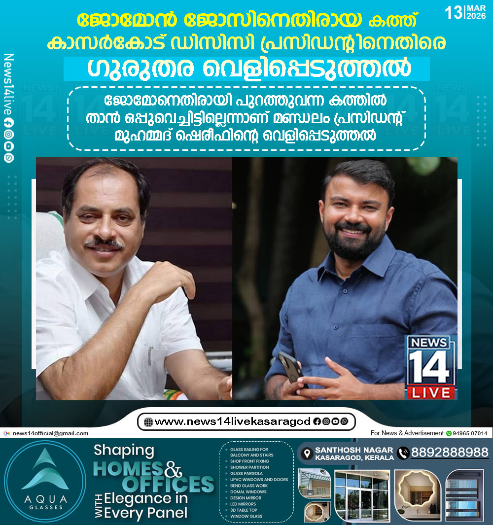 ജോമോന്‍ ജോസിനെതിരായ കത്ത്; കാസര്‍കോട് ഡിസിസി പ്രസിഡന്റിനെതിരെ ഗുരുതര വെളിപ്പെടുത്തല്‍