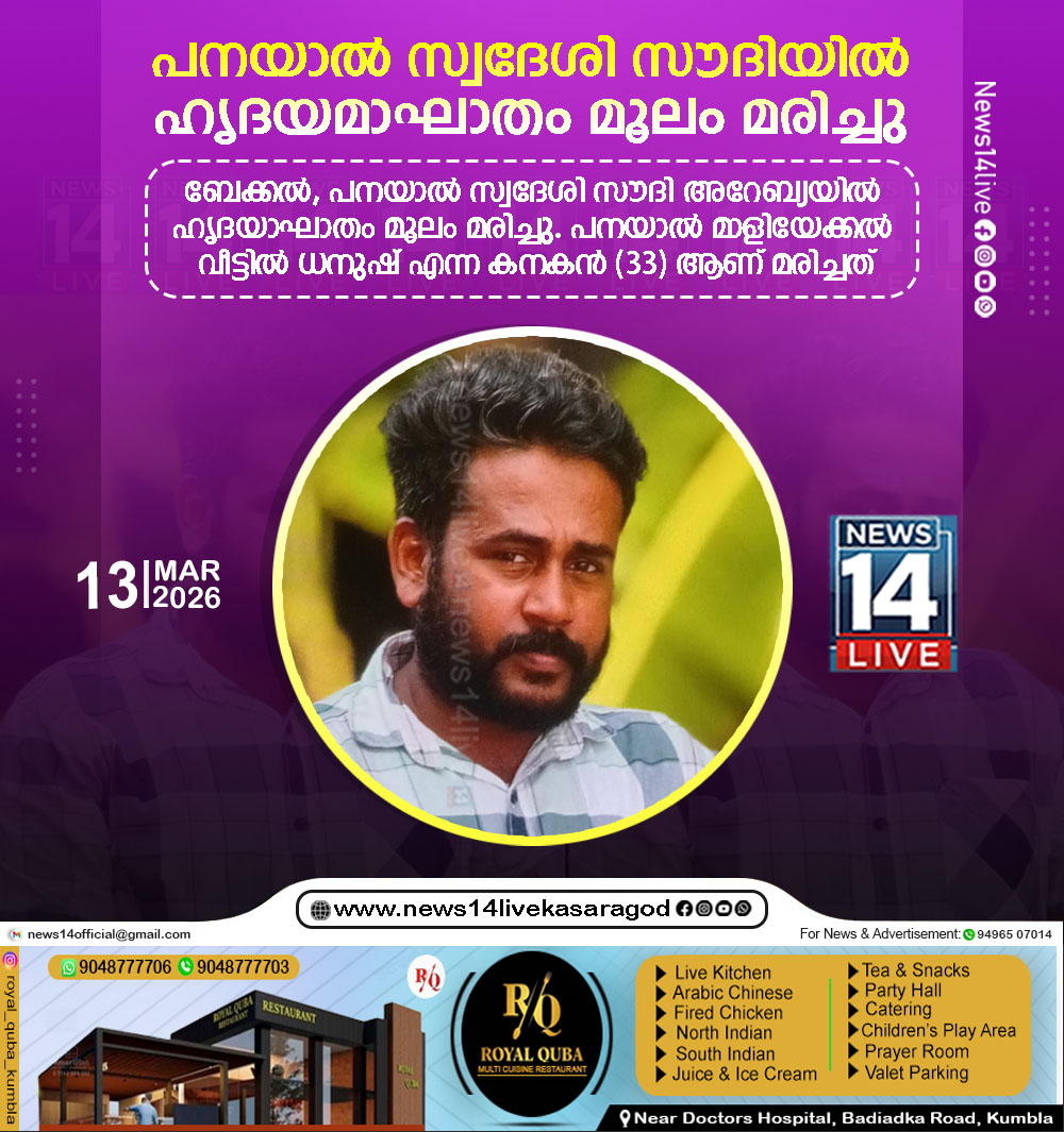 പനയാല്‍ സ്വദേശി സൗദിയില്‍ ഹൃദയമാഘാതം മൂലം മരിച്ചു