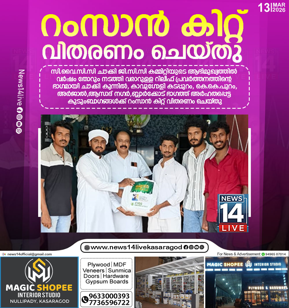 കാവുഗോളി ചൗക്കി: സി.വൈ.സി.സി ചൗക്കി ജി.സി.സി കമ്മിറ്റിയുടെ ആഭിമുഖ്യത്തില്‍ വര്‍ഷം തോറും നടത്തി വരാറുള്ള റിലീഫ് പ്രവര്‍ത്തനത്തിന്റെ ഭാഗമായി ചൗക്കി കുന്നില്‍, കാവുഗോളി കടപ്പുറം, കെ.കെ.പുറം ,അര്‍ജാല്‍,ആസാദ്…