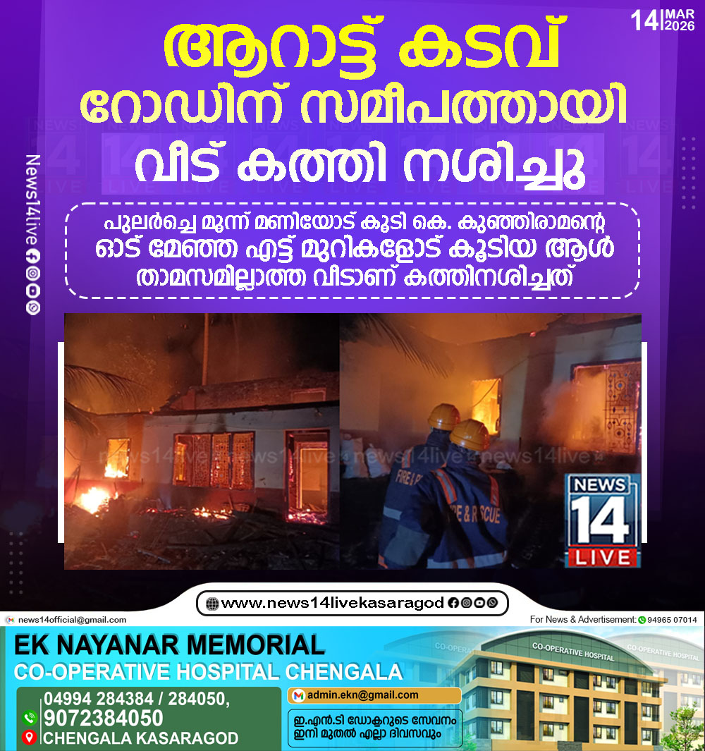 ആറാട്ട് കടവ് റോഡിന് സമീപത്തായി വീട് കത്തി നശിച്ചു