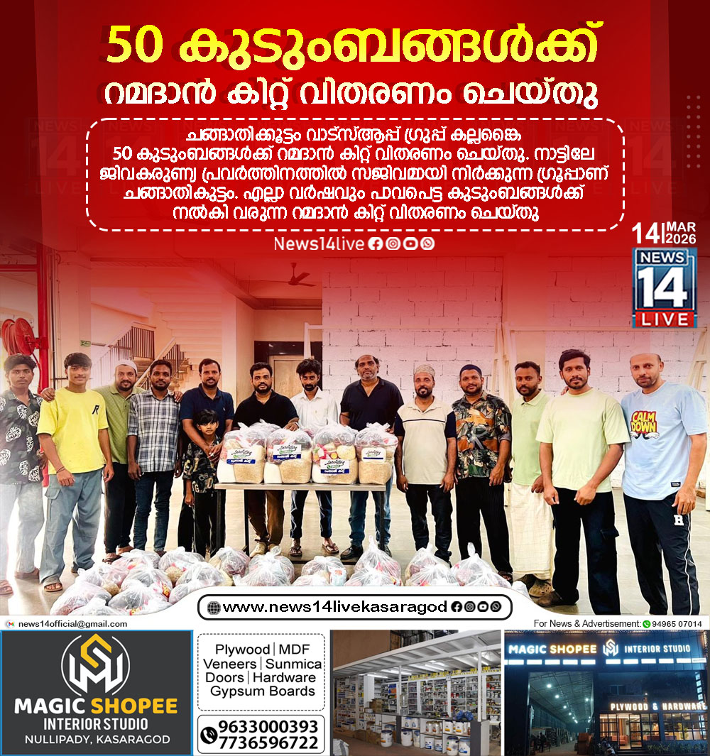 കല്ലങ്കൈ :ചങ്ങാതിക്കൂട്ടം വാട്‌സ്ആപ്പ് ഗ്രുപ്പ് കല്ലങ്കൈ50 കുടുംബങ്ങള്‍ക്ക് റമദാന്‍ കിറ്റ് വിതരണം ചെയ്തു.നാട്ടിലേ ജിവകരുണ്യ പ്രവര്‍ത്തിനത്തില്‍ സജിവമായി നിര്‍ക്കുന്ന ഗ്രൂപ്പാണ് ചങ്ങാതികുട്ടം.എല്ലാ വര്‍ഷവും പാവപെട്ട കുടുംബങ്ങള്‍ക്ക് നല്‍കി…