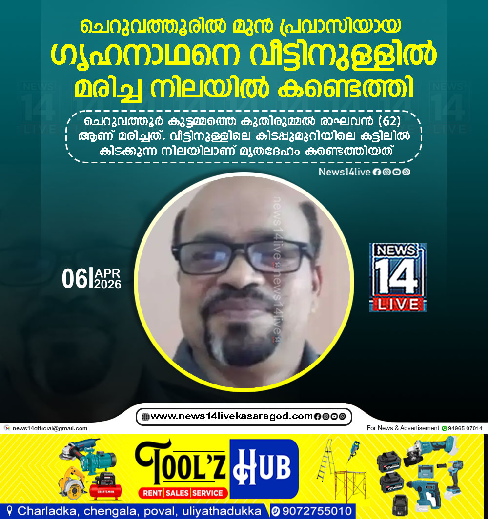 ചെറുവത്തൂര്: മുന് പ്രവാസിയായ ഗൃഹനാഥനെ വീട്ടിനുള്ളില് മരിച്ച നിലയില് കണ്ടെത്തി. ചെറുവത്തൂര് കുട്ടമ്മത്തെ കുതിരുമ്മല് രാഘവന് (62) ആണ് മരിച്ചത്. വീട്ടിനുള്ളിലെ കിടപ്പുമുറിയിലെ കട്ടിലില് കിടക്കുന്ന നിലയിലാണ്…