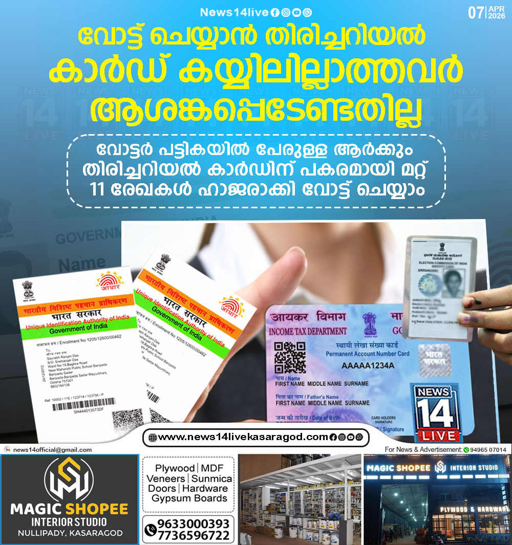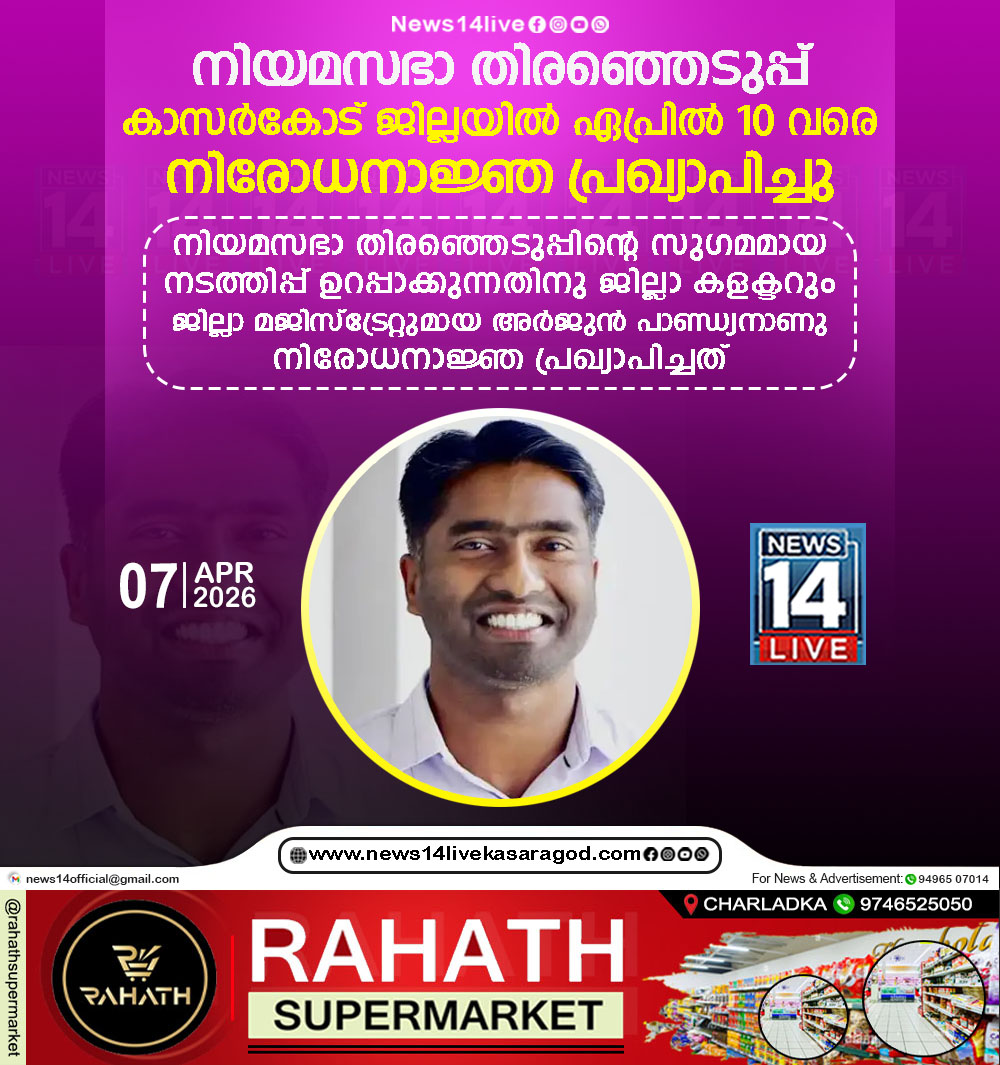 കാസര്കോട്:കാസര്കോട് ജില്ലയില് ഏപ്രില് 10 ന് രാവിലെ വരെ നിരോധനാജ്ഞ പ്രഖ്യാപിച്ചു. നിയമസഭാ തിരഞ്ഞെടുപ്പിന്റെ സുഗമമായ നടത്തിപ്പ് ഉറപ്പാക്കുന്നതിനു ജില്ലാ കളക്ടറും ജില്ലാ മജിസ്ട്രേറ്റുമായ അര്ജുന് പാണ്ഡ്യനാണു…