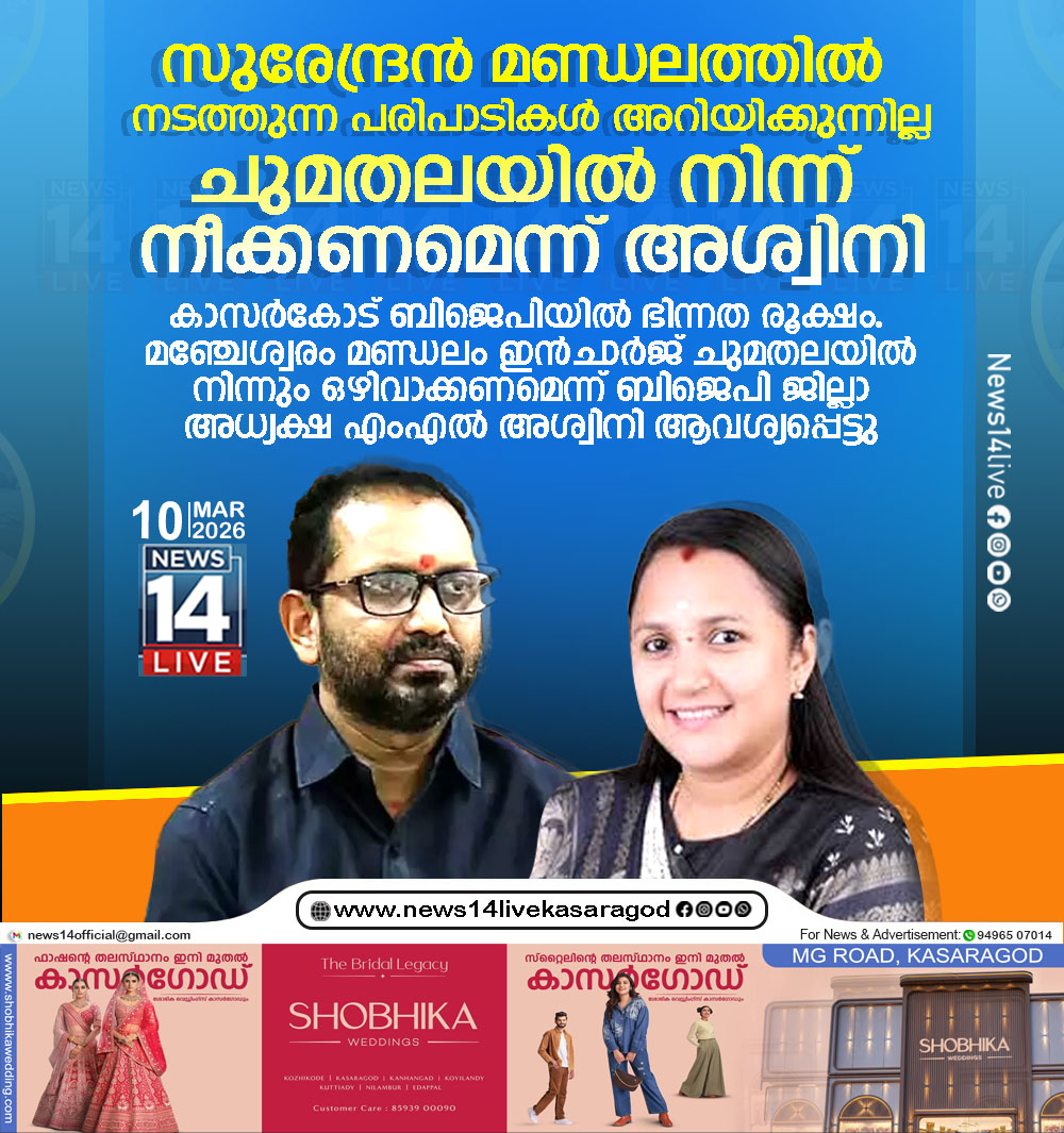 കാസര്കോട്: കാസര്കോട് ബിജെപിയില് ഭിന്നത രൂക്ഷം. മഞ്ചേശ്വരം മണ്ഡലം ഇന്ചാര്ജ് ചുമതലയില് നിന്നും ഒഴിവാക്കണമെന്ന് ബിജെപി ജില്ലാ അധ്യക്ഷ എംഎല് അശ്വിനി ആവശ്യപ്പെട്ടു. കെ സുരേന്ദ്രന് മണ്ഡലത്തില്…