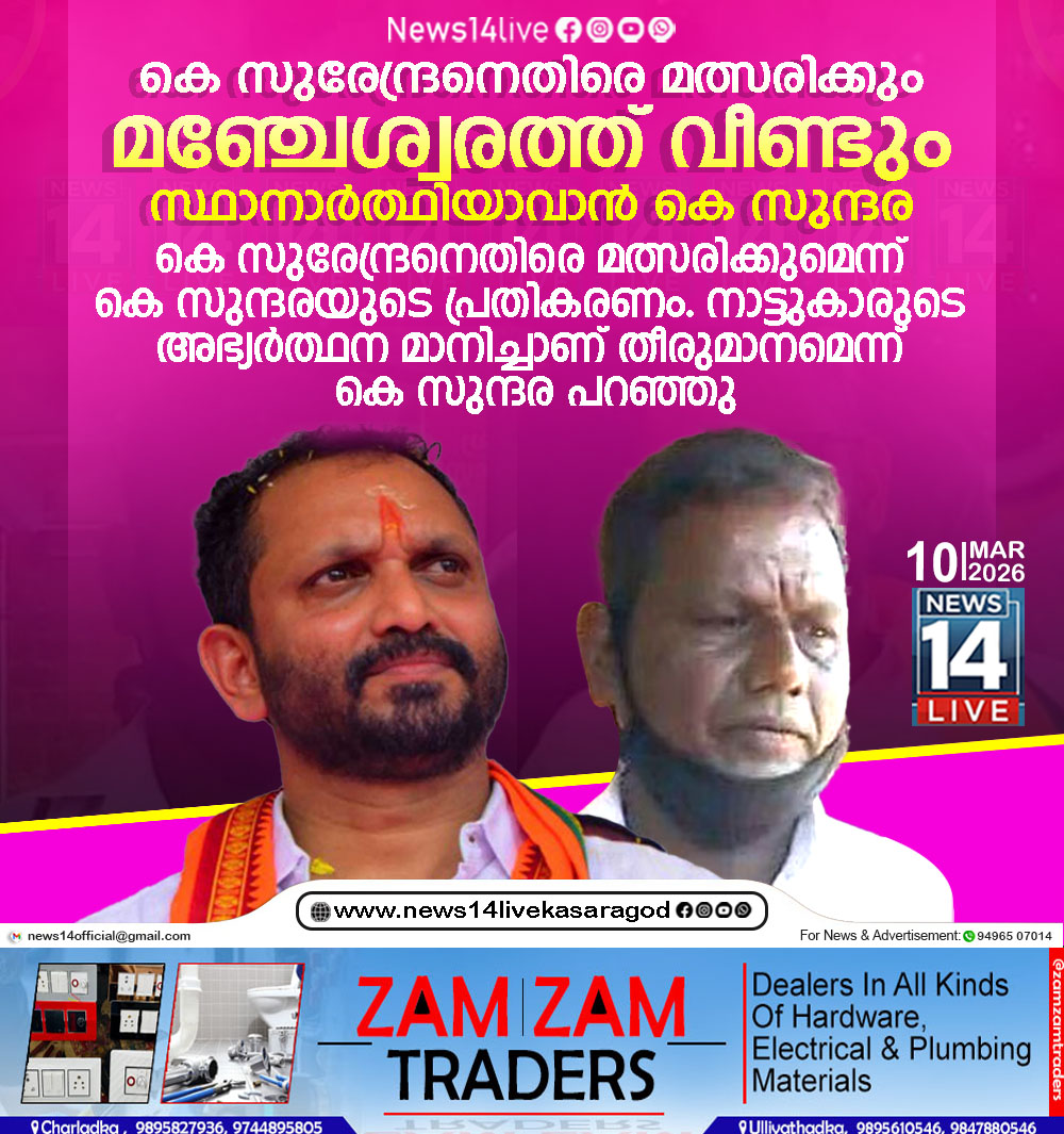 മഞ്ചേശ്വരത്ത് വീണ്ടും സ്ഥാനാര്ത്ഥിയാവാന് കെ സുന്ദര. കെ സുരേന്ദ്രനെതിരെ മത്സരിക്കുമെന്ന് കെ സുന്ദരയുടെ പ്രതികരണം. നാട്ടുകാരുടെ അഭ്യര്ത്ഥന മാനിച്ചാണ് തീരുമാനമെന്ന് കെ സുന്ദര പറഞ്ഞു. മഞ്ചേശ്വരം തെരഞ്ഞെടുപ്പ്…