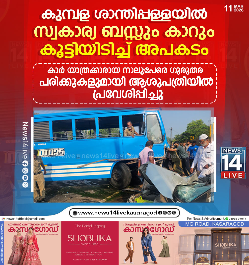 മൊഗ്രാല് പുത്തൂര് ടൗണില് കെ.എസ്.ആര്.ടി.സി ബസും സ്വകാര്യ ബസും കൂട്ടിയിടിച്ച് അപകടം. വീതി കുറഞ്ഞ സര്വ്വീസ് റോഡിലൂടെയുള്ള ബസുകളുടെ അമിതവേഗതയും മത്സരയോട്ടവുമാണ് അപകടത്തിന് കാരണമായതെന്നാണ് പ്രാഥമിക വിവരം.…