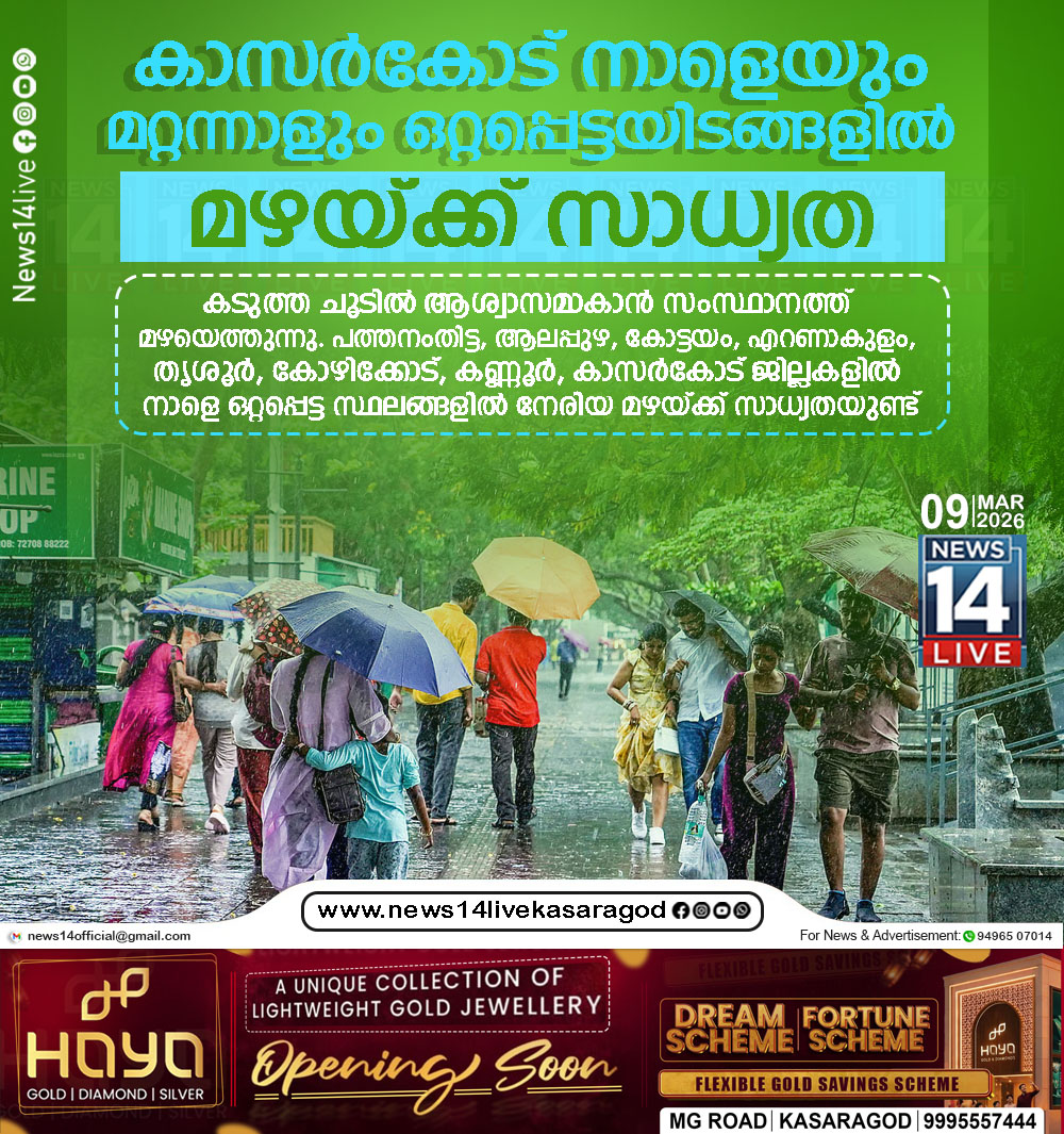 കാസര്‍കോട് നാളെയും മറ്റന്നാളും ഒറ്റപ്പെട്ടയിടങ്ങളില്‍ മഴയ്ക്ക് സാധ്യത