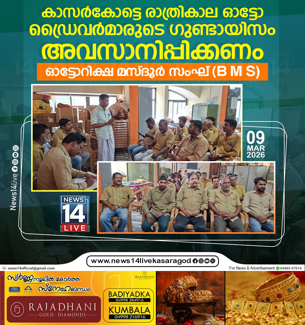 കാസര്‍കോട്ടെ രാത്രികാല ഓട്ടോ ഡ്രൈവര്‍മാരുടെ ഗുണ്ടായിസം അവസാനിപ്പിക്കണം;ഓട്ടോറിക്ഷ മസ്ദൂര്‍ സംഘ് (B M S)