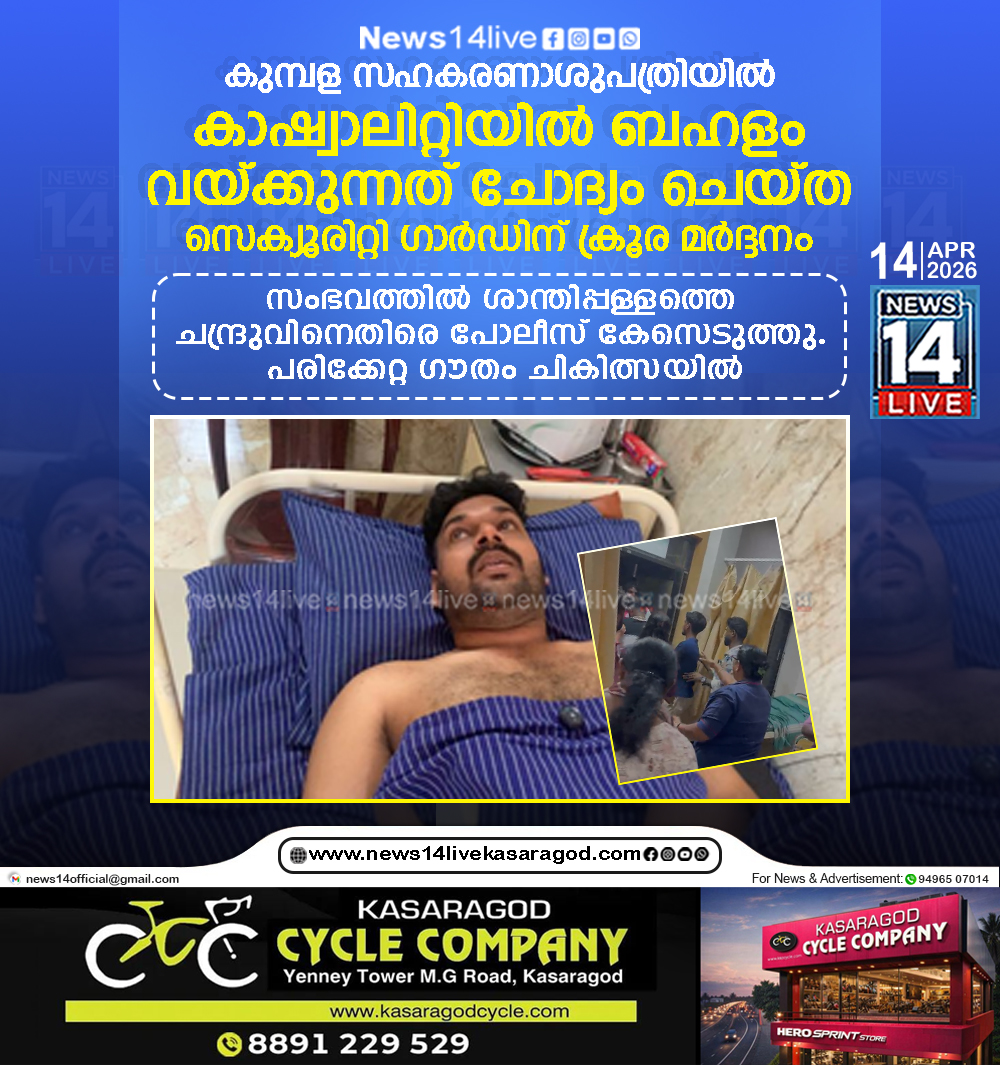 കുമ്പള സഹകരണാശുപത്രിയില്‍ കഷ്വാലിറ്റിയില്‍ ബഹളം വയ്ക്കുന്നത് ചോദ്യം ചെയ്ത സെക്യൂരിറ്റി ഗാര്‍ഡിന് ക്രൂര മര്‍ദ്ദനം