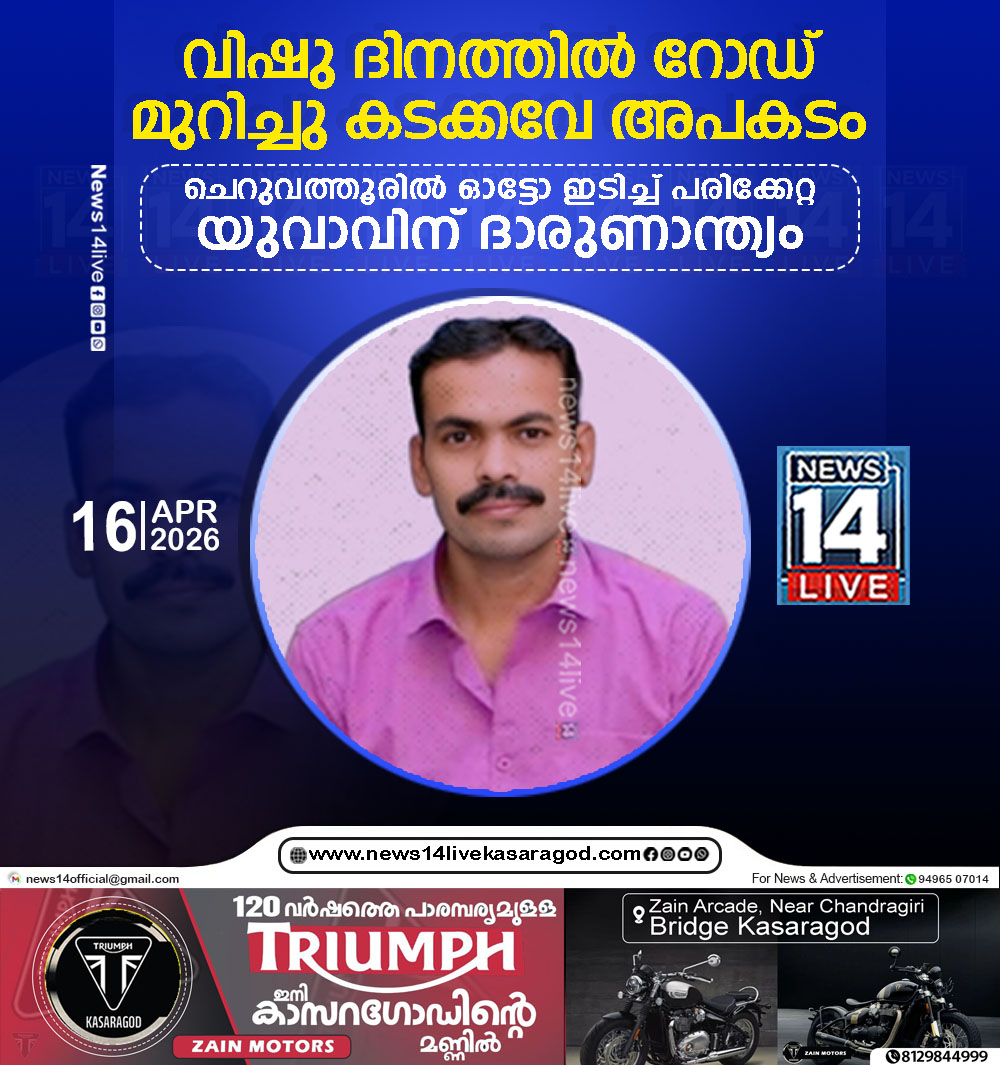 വിഷു ദിനത്തില്‍ റോഡ് മുറിച്ചു കടക്കവേ അപകടം; ചെറുവത്തൂരില്‍ ഓട്ടോ ഇടിച്ച് പരിക്കേറ്റ യുവാവിന് ദാരുണാന്ത്യം