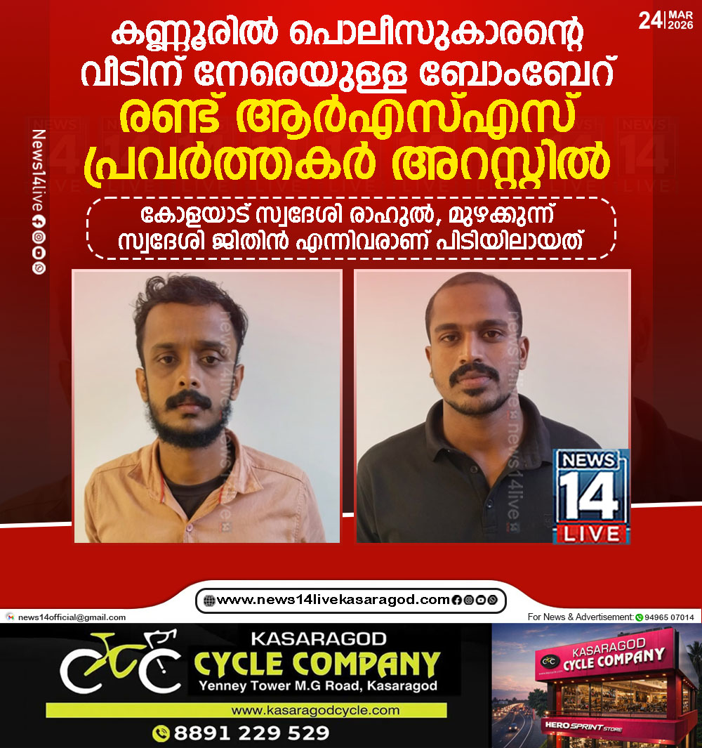 കണ്ണൂര്: കണ്ണൂര് ചെറുവാഞ്ചേരിയില് പോലീസുകാരന്റെ വീടിന് നേരെ ബോംബ് എറിഞ്ഞ കേസില് രണ്ട് ആര്എസ്എസ് പ്രവര്ത്തകര് അറസ്റ്റില്. കോളയാട് സ്വദേശി രാഹുല്, മുഴക്കുന്ന് സ്വദേശി ജിതിന് എന്നിവരാണ്…