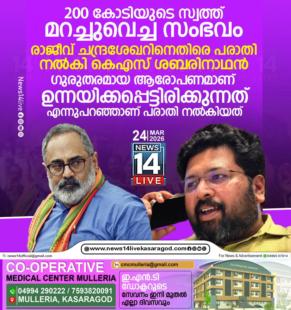 തിരുവനന്തപുരം: തെരഞ്ഞെടുപ്പ് സത്യവാങ്മൂലത്തില് 200 കോടി രൂപയുടെ സ്വത്ത് മറച്ചുവെച്ചതില് രാജീവ് ചന്ദ്രശേഖറിനെതിരെ പരാതി നല്കി നേമത്തെ യുഡിഎഫ് സ്ഥാനാര്ത്ഥി കെ എസ് ശബരിനാഥന്. ഗുരുതരമായ ആരോപണമാണ്…