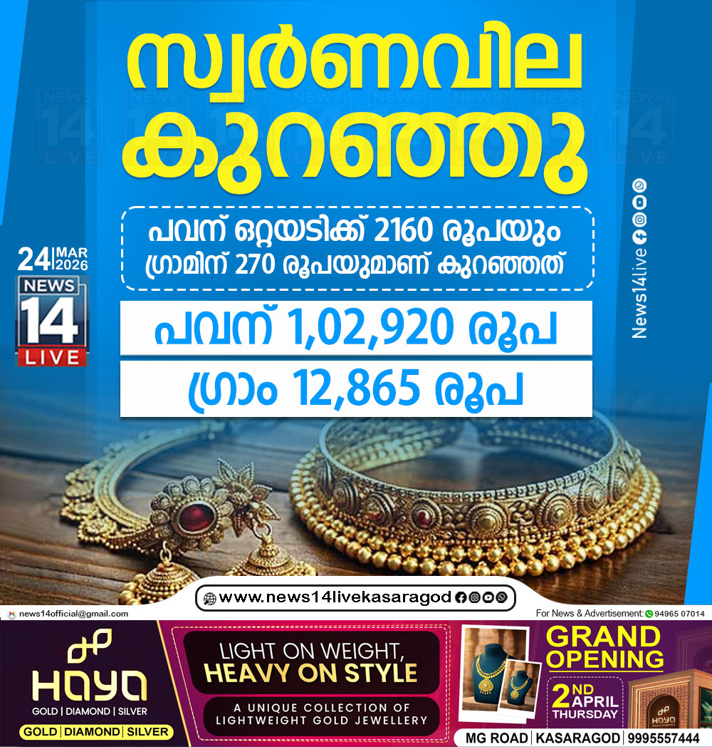 സംസ്ഥാനത്ത് സ്വര്ണ വിലയില് ഇടിവ്. ഇന്ന് ഒരു പവന് 22 കാരറ്റ് സ്വര്ണത്തിന് 1,02,920 രൂപയിലാണ് വ്യാപാരം നടക്കുന്നത്. ഇന്നലെ മാത്രം 4 തവണയാണ് സ്വര്ണ വിലയില്…