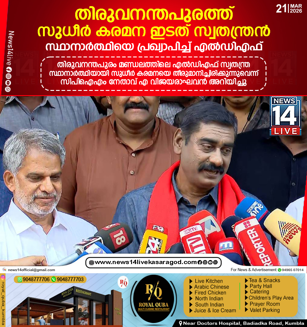 തിരുവനന്തപുരം: തിരുവനന്തപുരം മണ്ഡലത്തില് എല്ഡിഎഫ് സ്വതന്ത്ര സ്ഥാനാര്ത്ഥിയായി നടന് സുധീര് കരമന മത്സരിക്കും. എല്ഡിഎഫ് ഔദ്യോഗികമായി സ്ഥാനാര്ത്ഥി പ്രഖ്യാപനം നടത്തി. തിരുവനന്തപുരം മണ്ഡലത്തിലെ എല്ഡിഎഫ് സ്വതന്ത്ര സ്ഥാനാര്ത്ഥിയായി…