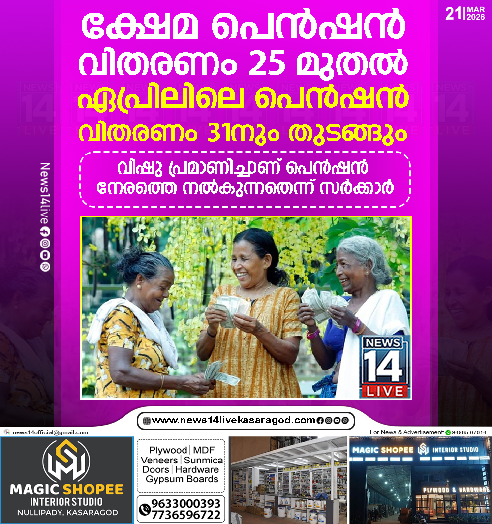 തിരുവനന്തപുരം: വോട്ടെടുപ്പിന് മുന്പ് സാമൂഹ്യ സുരക്ഷ, ക്ഷേമനിധി പെന്ഷന് വിതരണം ചെയ്യാനൊരുങ്ങി സര്ക്കാര്. മാര്ച്ചിലെ പെന്ഷനുകള് 25 മുതല് വിതരണം ചെയ്യും. ഏപ്രില് മാസത്തെ ക്ഷേമ പെന്ഷന്…