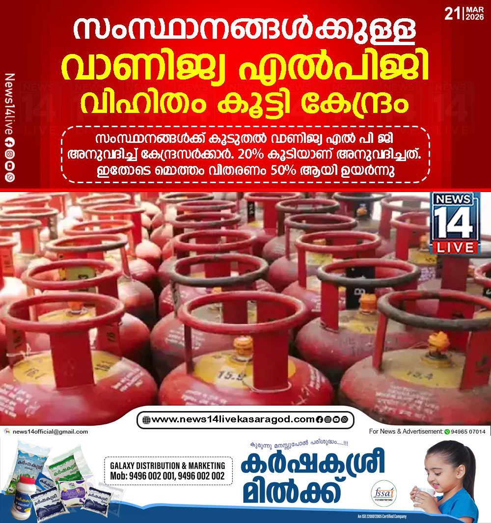 സംസ്ഥാനങ്ങള്ക്ക് കൂടുതല് വാണിജ്യ എല് പി ജി അനുവദിച്ച് കേന്ദ്രസര്ക്കാര്. 20% കൂടിയാണ് അനുവദിച്ചത്. ഇതോടെ മൊത്തം വിതരണം 50% ആയി ഉയര്ന്നു. സംസ്ഥാനത്തെ ഹോട്ടല്, കാന്റീനുകള്,…