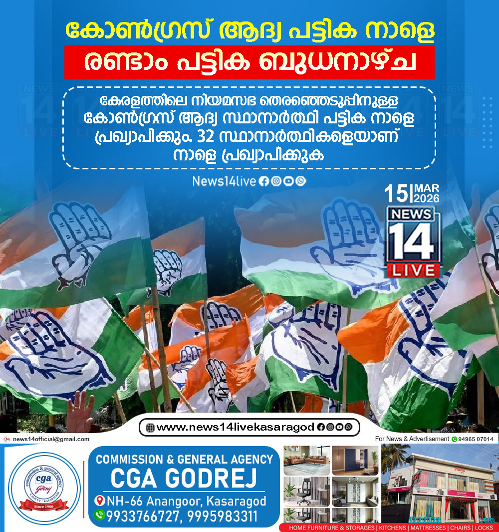 ന്യൂഡല്ഹി: കേരളത്തിലെ നിയമസഭ തെരഞ്ഞെടുപ്പിനുള്ള കോണ്ഗ്രസ് ആദ്യ സ്ഥാനാര്ത്ഥി പട്ടിക നാളെ പ്രഖ്യാപിക്കും. 32 സ്ഥാനാര്ത്ഥികളെയാണ് നാളെ പ്രഖ്യാപിക്കുക. രണ്ടാം പട്ടിക ബുധനാഴ്ച പ്രഖ്യാപിക്കും. 26 ദിവസത്തിനുള്ളില്…